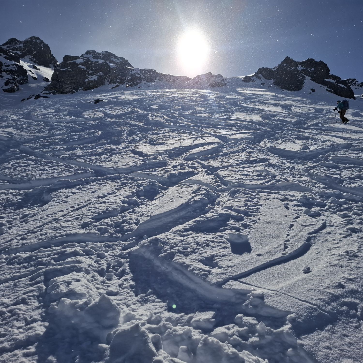 Die meisten Tourengehen machen kurz unter dem Gipfel Skidepot. Zurzeit ist aber genügend Schnee um bis zum Gipfel mit Skiern zu gehen.