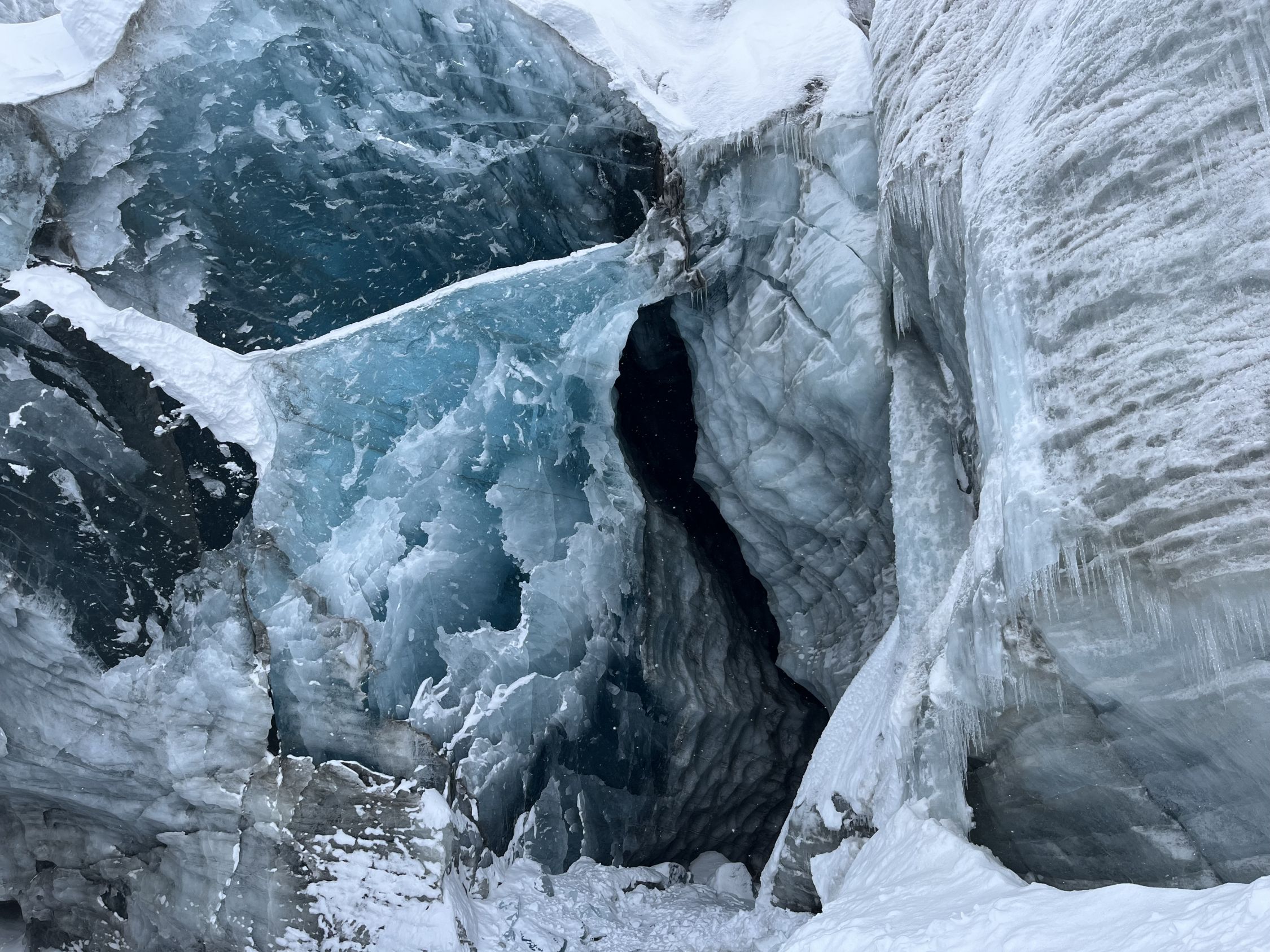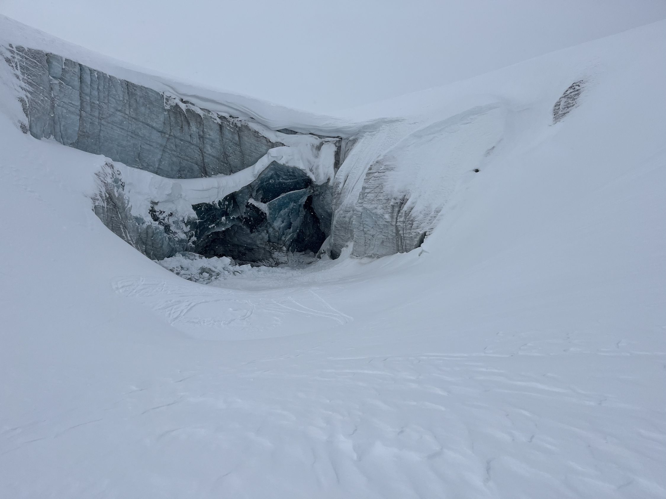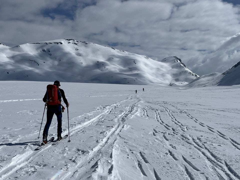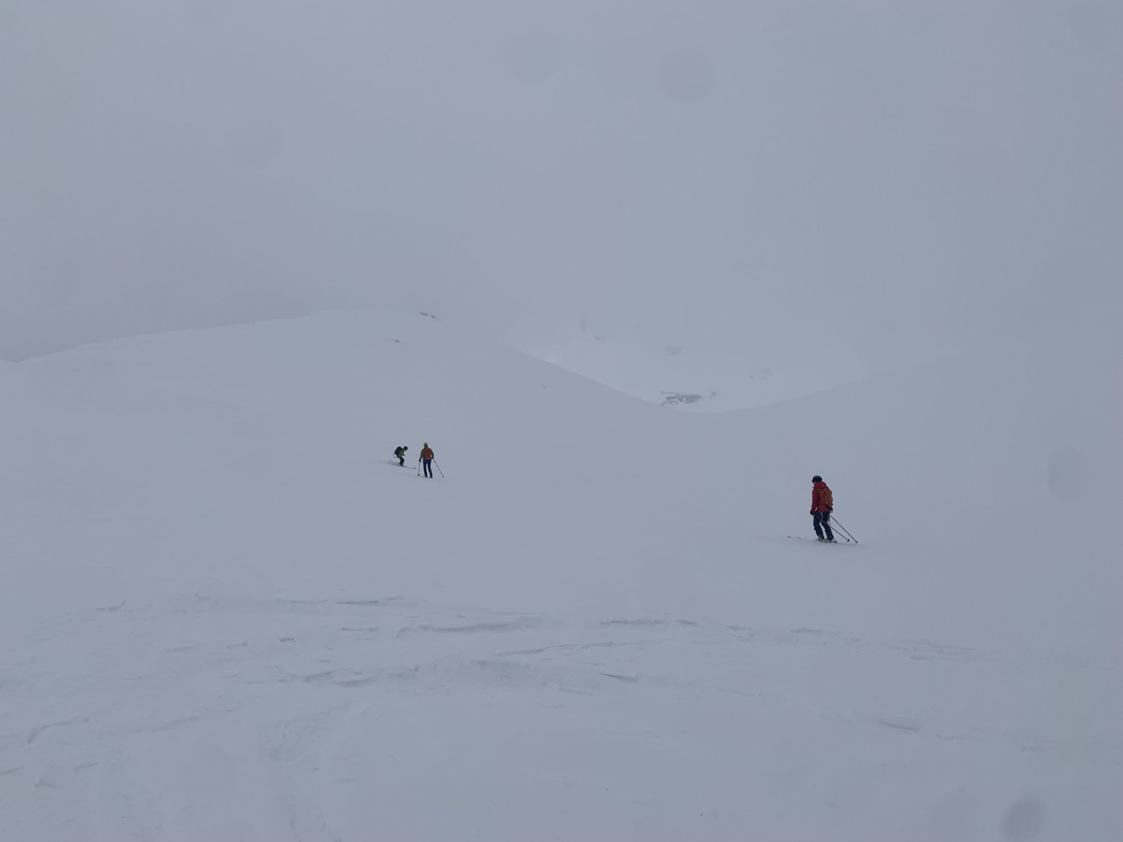 Von Col Plaine Morte Richtung Osten auf den Plaine Morte runter. Flach weiter und zum Schluss Rothorn Aufstieg. Am Morgen sonnig und Mittag Nebel. Gleicher Weg zurück. Sé Mort Gipfel besucht. Abfahrt Piste östlich von Bonvin schön. Insgesamt wunderbar. Dazu beigetragen hat eine grosse Eishöhle unterhalb Les Faverges (siehe fotos).