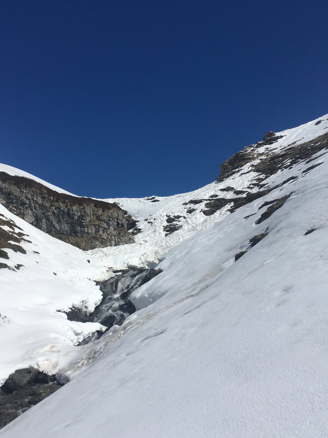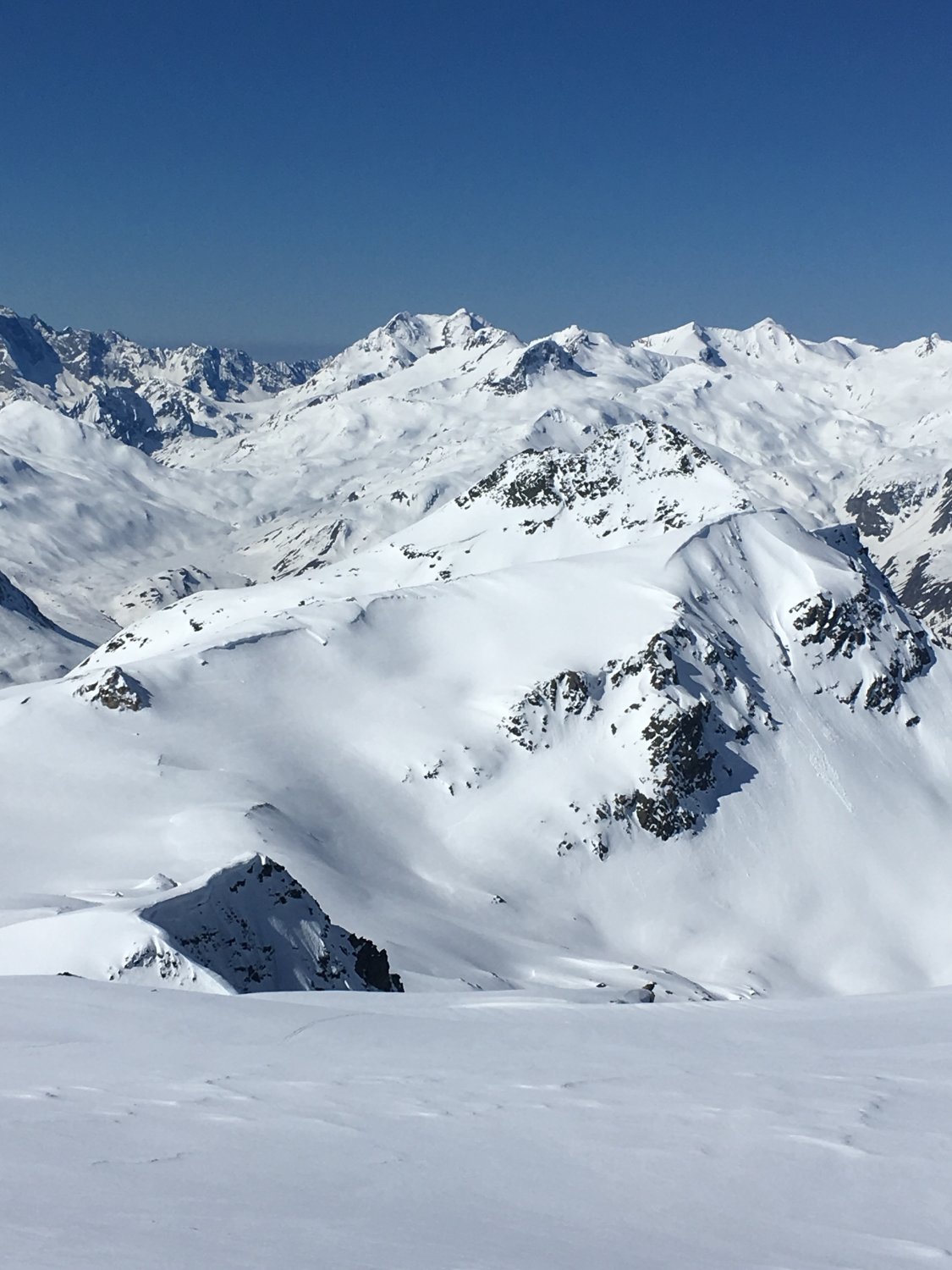 Start um 5.45 Uhr Parkplatz unterhalb La Veduta, 0 Grad, windstill. Perfekte Aufstiegsverhältnisse, harte tragende Unterlage, etwa Höhe 2350 m auf die rechte Talseite wechseln in Aufstiegsrichtung wegen massiver Lawinen Osthang Piz Bardella. Ab P. 2782 Harscheisen erforderlich, sehr steiler Hang, nachher bis Gipfel moderater. Abfahrt um 10 Uhr mit Traumverhältnissen, ganz wenig Pulverschnee auf hartem Firn, im unteren Teil teilweise weiche Oberfläche. Bin auf der linken Talseite Val d Agnel abgefahren, kurzes Stück über Lawinenrutsch, problemlos mit Ski. Es hat noch sehr viel Schnee, die Tour kann man noch einige Wochen machen, ein Hammer. Ausser einem Schneehuhn habe ich niemanden angetroffen, zwei Tourengänger Richtung Fuorcla d Agnel.