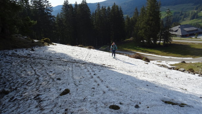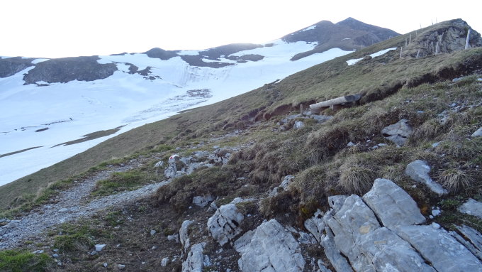 Beim Morgetenpass kurz 100m Aper und danach bei tiefer Route noch durchgehend bis Gipfel