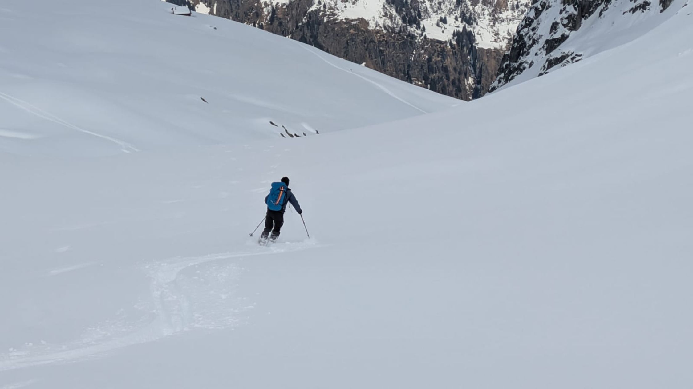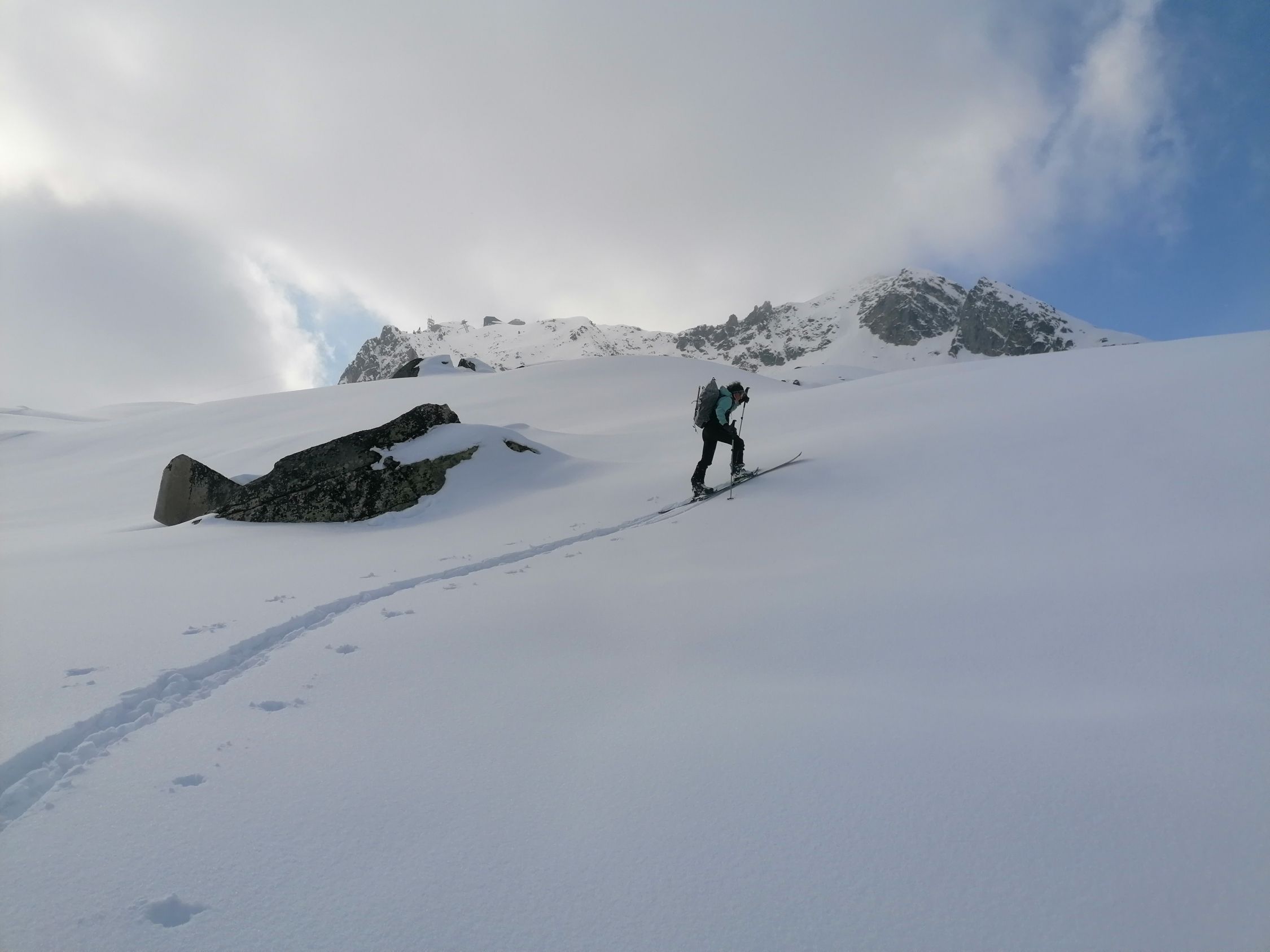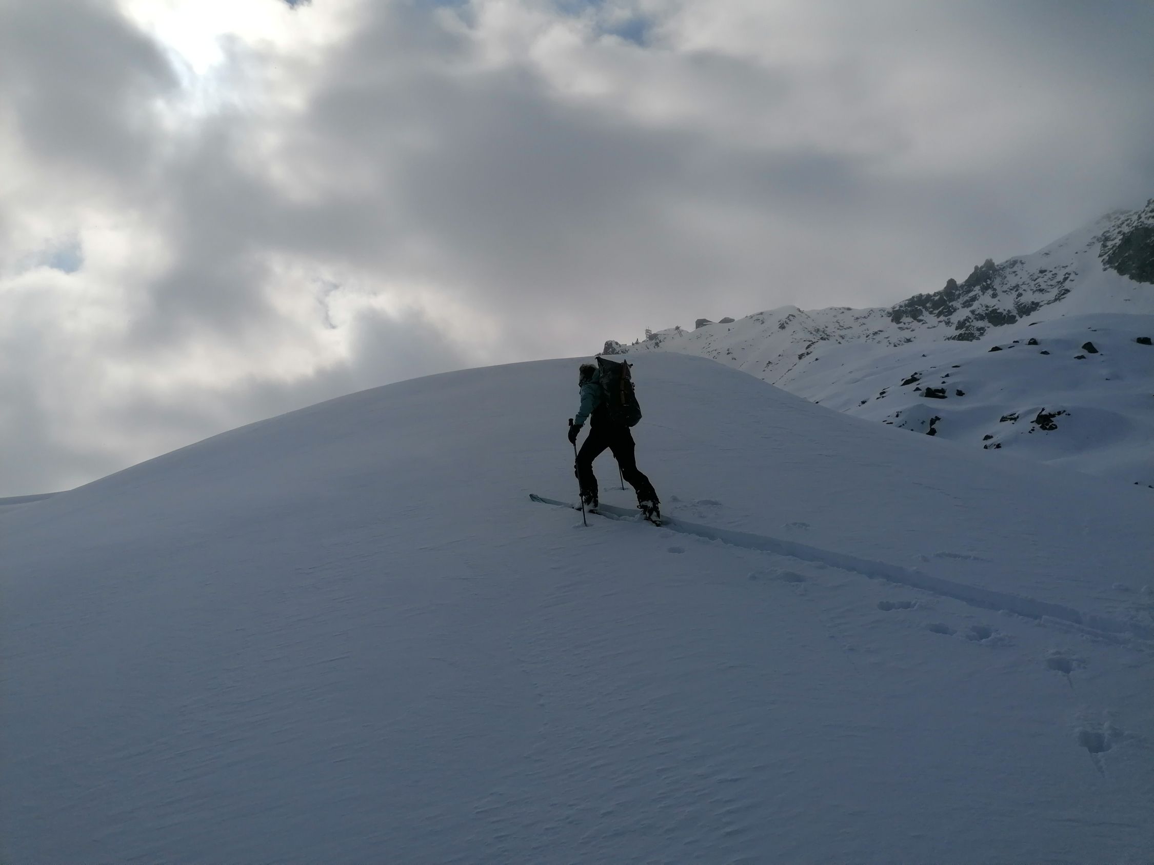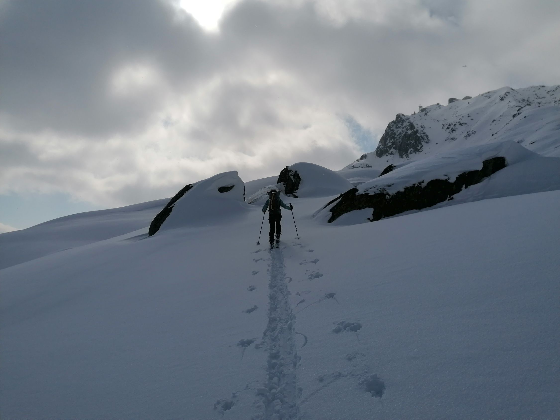 Gut. Das Wetter zuerst schwacher Nebel. Dann Sonnenschein. Die 300m Aufstieg beziehen sich auf die Route von der Obern Tälli Alp 2300m zurück ins Ski Gebiet.