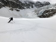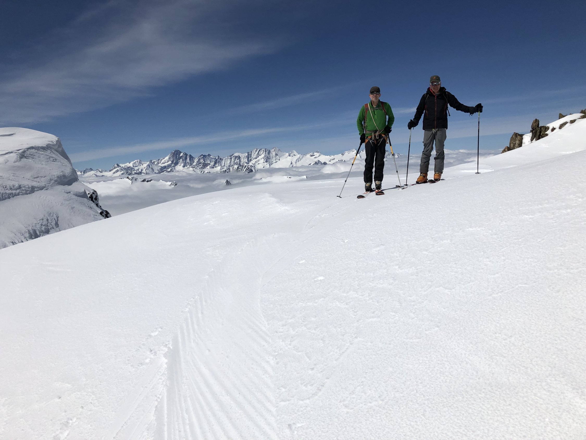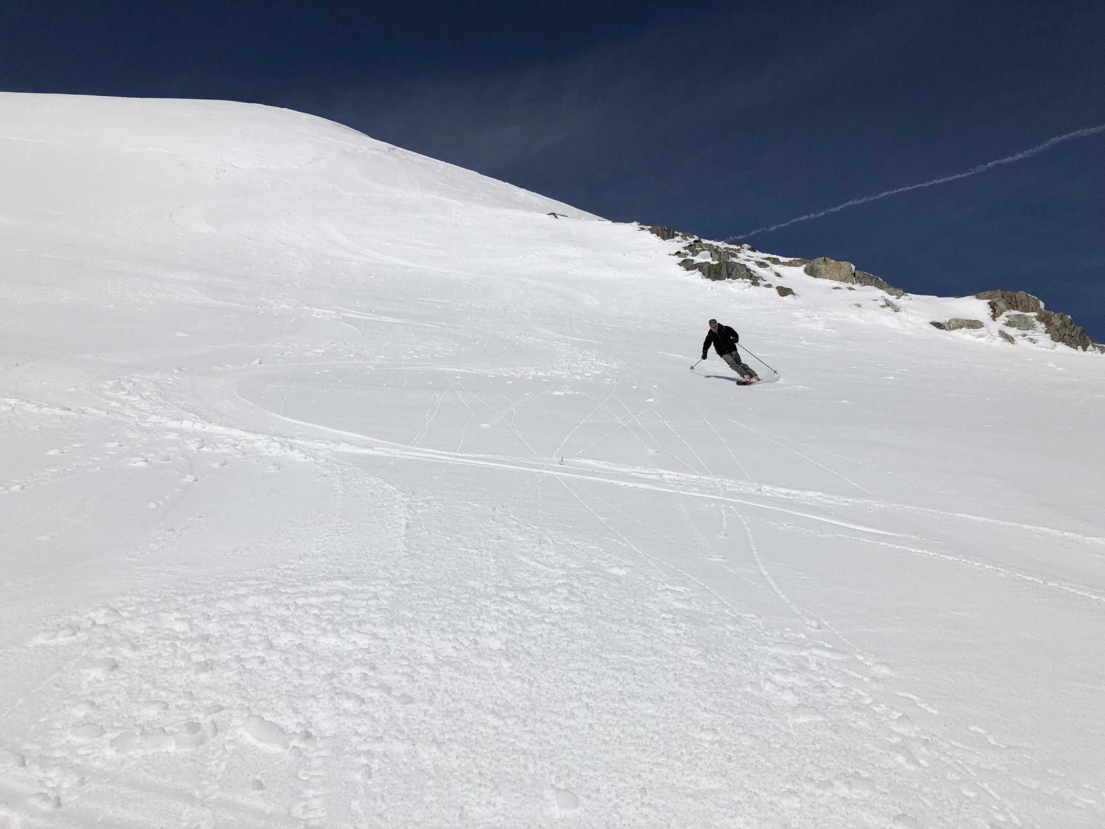 Das ganze Gebiet ist sehr gut eingeschneit und ab dem Hotel Steingletscher liegt eine meterdicke Schneeschicht. Ab Mitte Vormittag schöne Aufhellungen und auf dem Gipfel schliesslich Sonne pur. Um 11:00h sind wir bei besten Bedingungen abgefahren. Unterhalb von ca. 2500 m bis zurück zum Hotel lag Nassschnee.