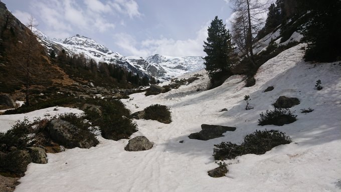 Der Aufstieg zur Hütte geht über viele Lawinen und ist scho recht bollig.