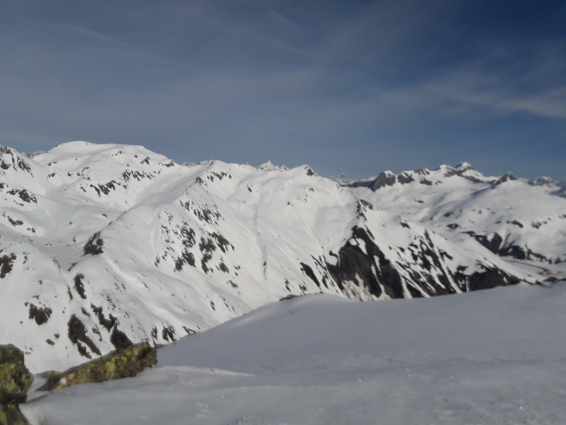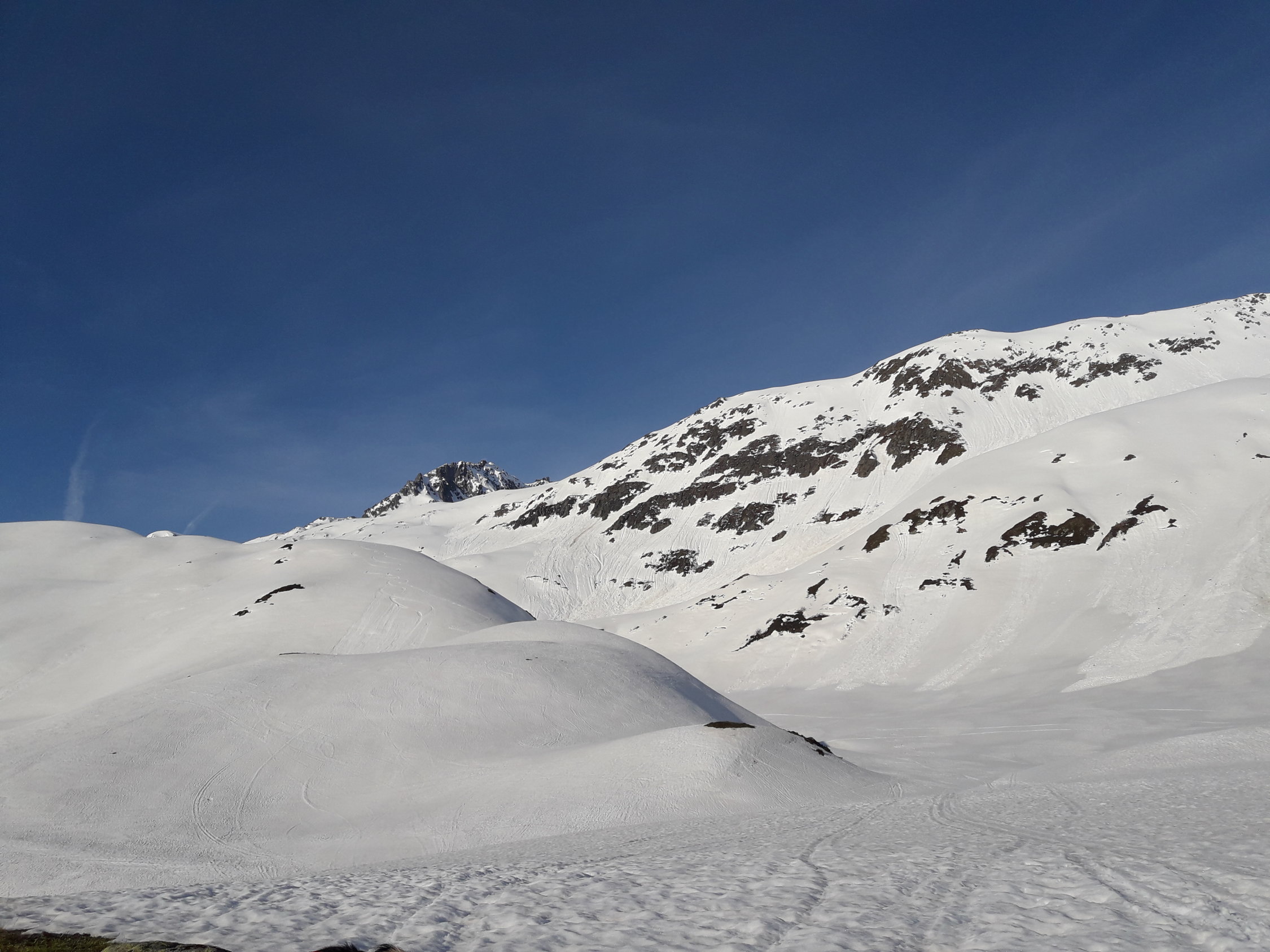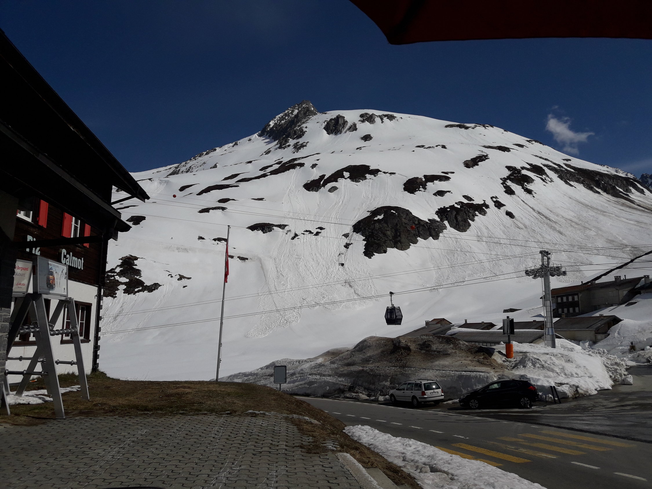 Auch Pazolastock mit viel Schnee, selbst der Hang oberhalb der Bahnstation hatte noch eine geschlossene Schneedecke.