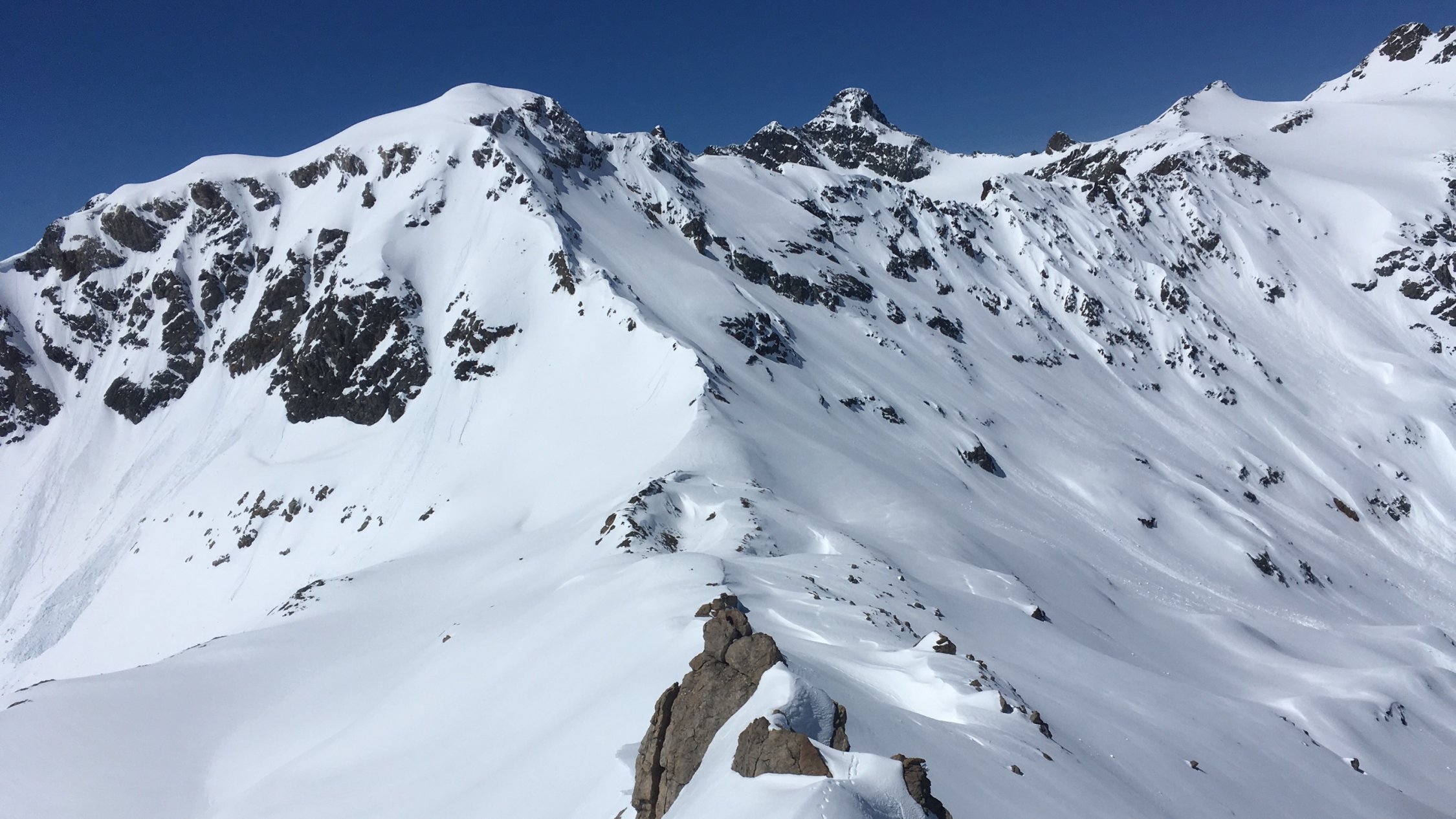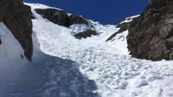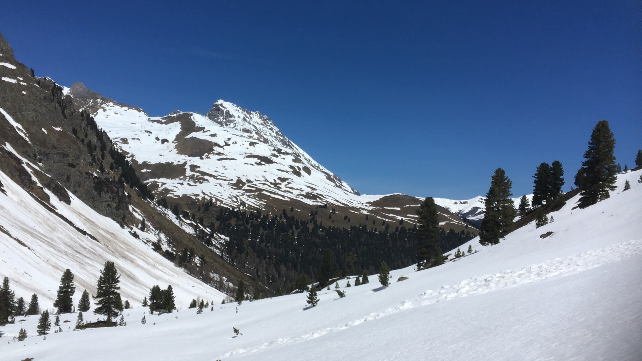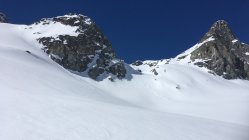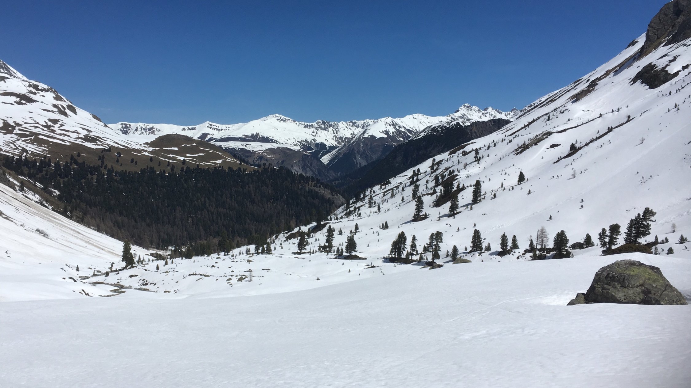 Wenig störende Lawinenkegel und Abfahrt knapp bis Natz orografisch rechts „möglich“.