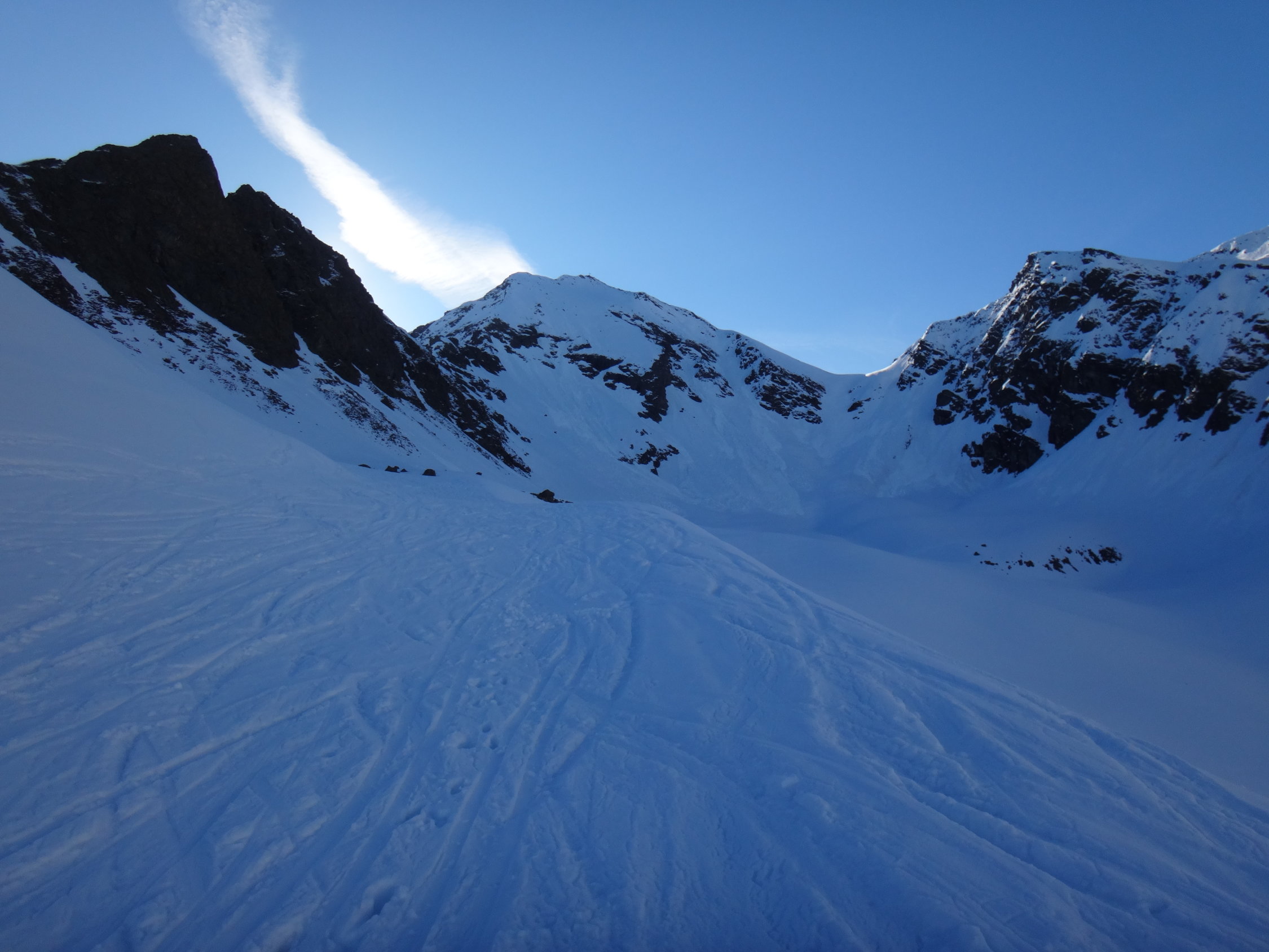 Abfahrt durch Nordrinne und Innere Hirscheben,