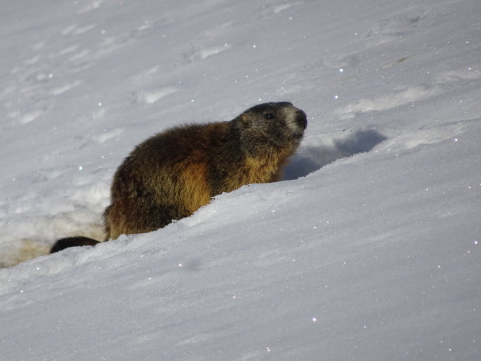 Start heute um 05:45Uhr. Ein paar Meter zufuss und weiter nach Dürrboden auf geschlossener Schneedecke. Schnee hat es generell noch genug.