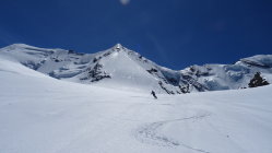 Das war heute eine echt schwierige herausforderung denn schon der Schrund unten mit Spitzkehren sehr steil weiter bis Skidepot hart und steil