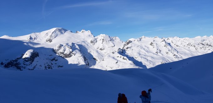 Der unterste Hang 120hm wie üblich wenig Schnee, zur Hälfte Fussaufstieg. Ab Passstrasse 2020m sehr viel Schnee und super Bedingungen, meist hart gefroren.