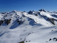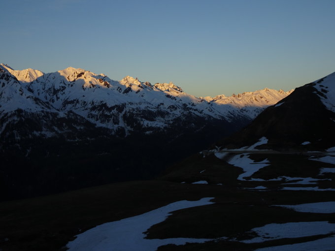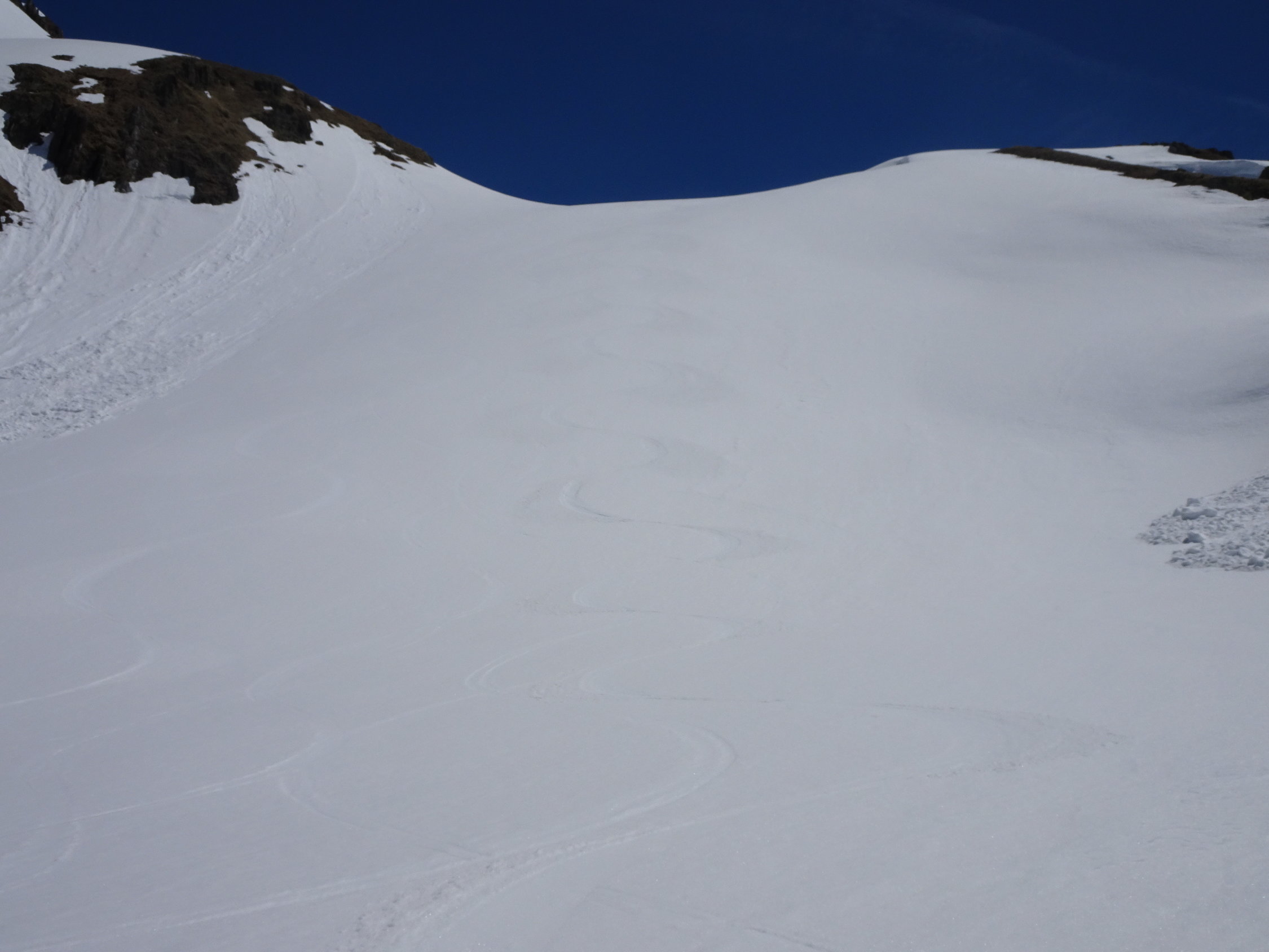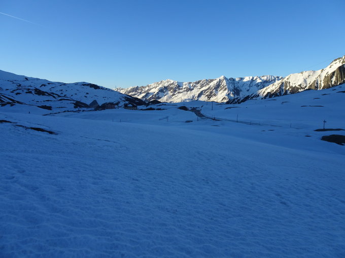 Wunderbare relativ wenigbegangene Rundtour möglich, während bei der klassischen Runde(Gotthardpass - Pizzo Lucendro - Fibbia) eine richtige Völkerwanderung vonstatten geht(mindestens an solchen Tagen). Super Abfahrtshänge. Am Schluss habe ich mich dann entschieden, statt die lange Querung zurück zum Pass, direkt hinunter zur Passstrasse und anschliessend Fussmarsch zum Auto.