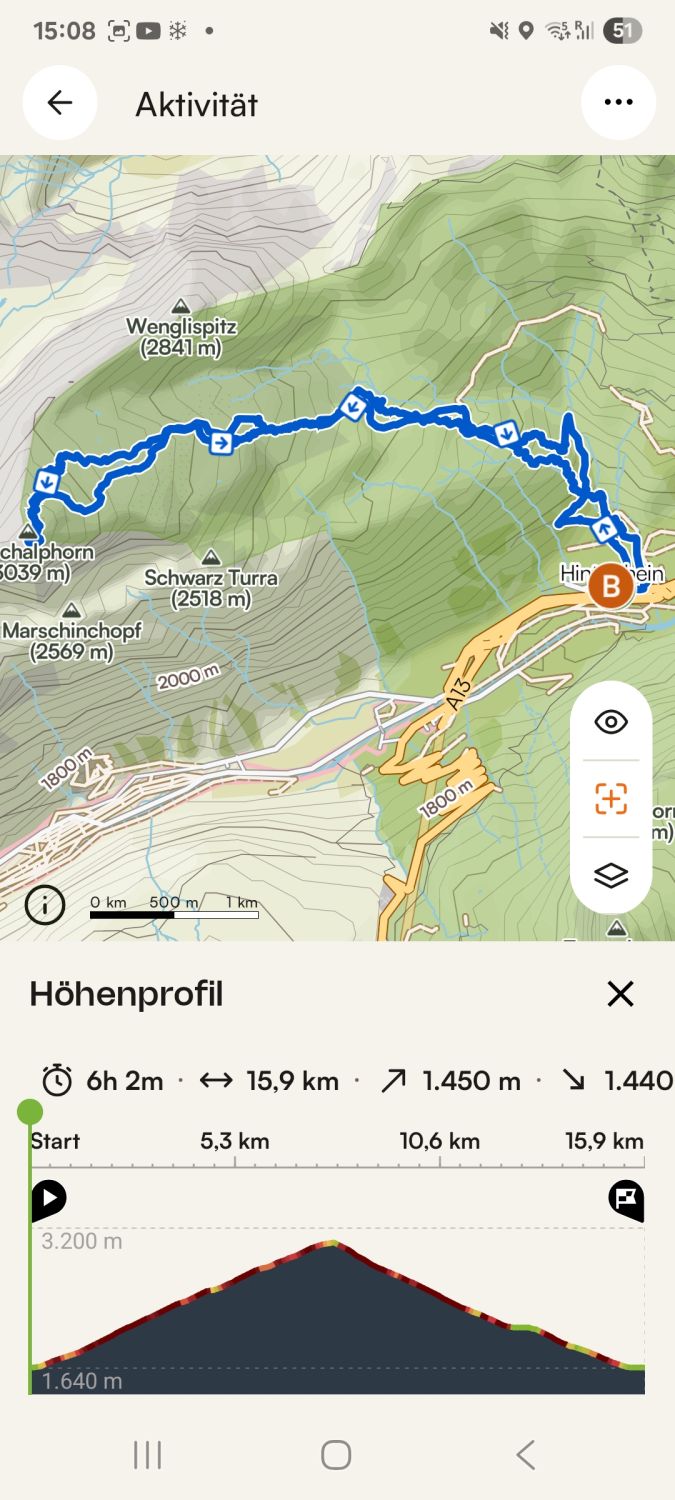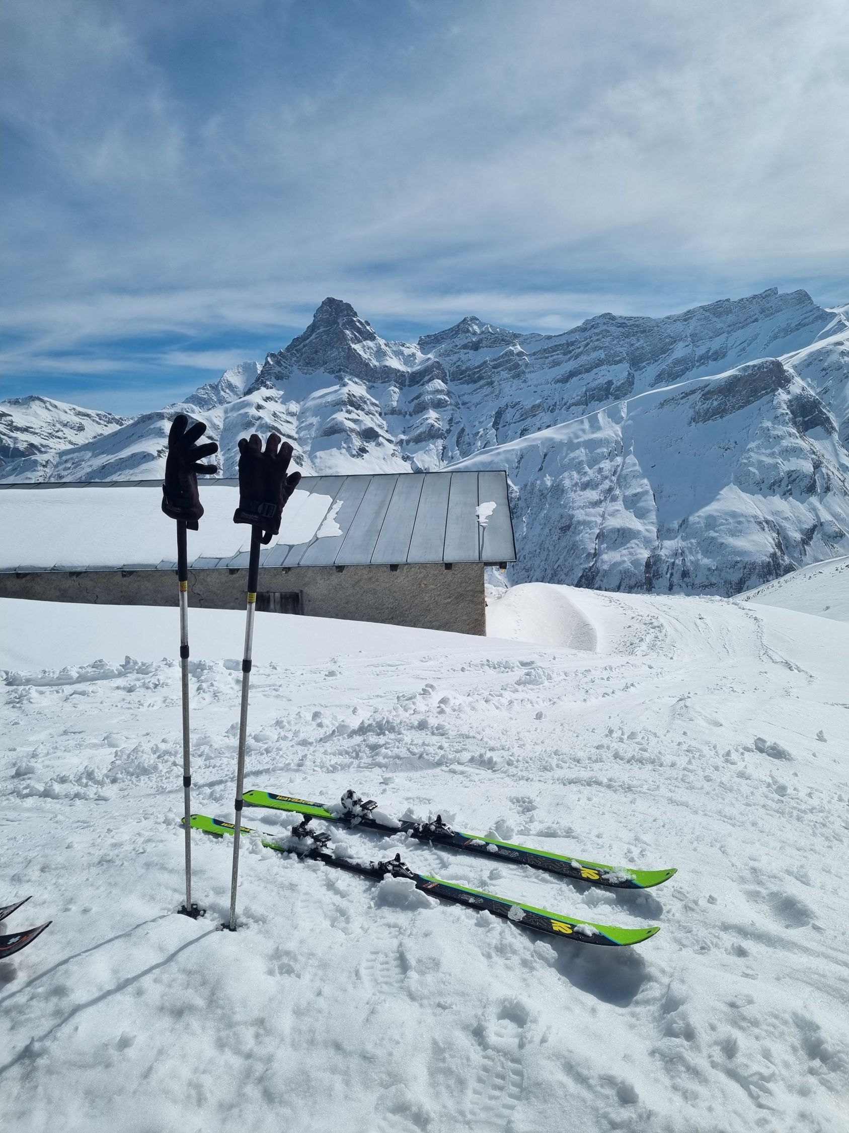 Bis zur Steinmauer unterhalb der Chilchalp immer wieder Ski getragen, darüber ausgezeichnet