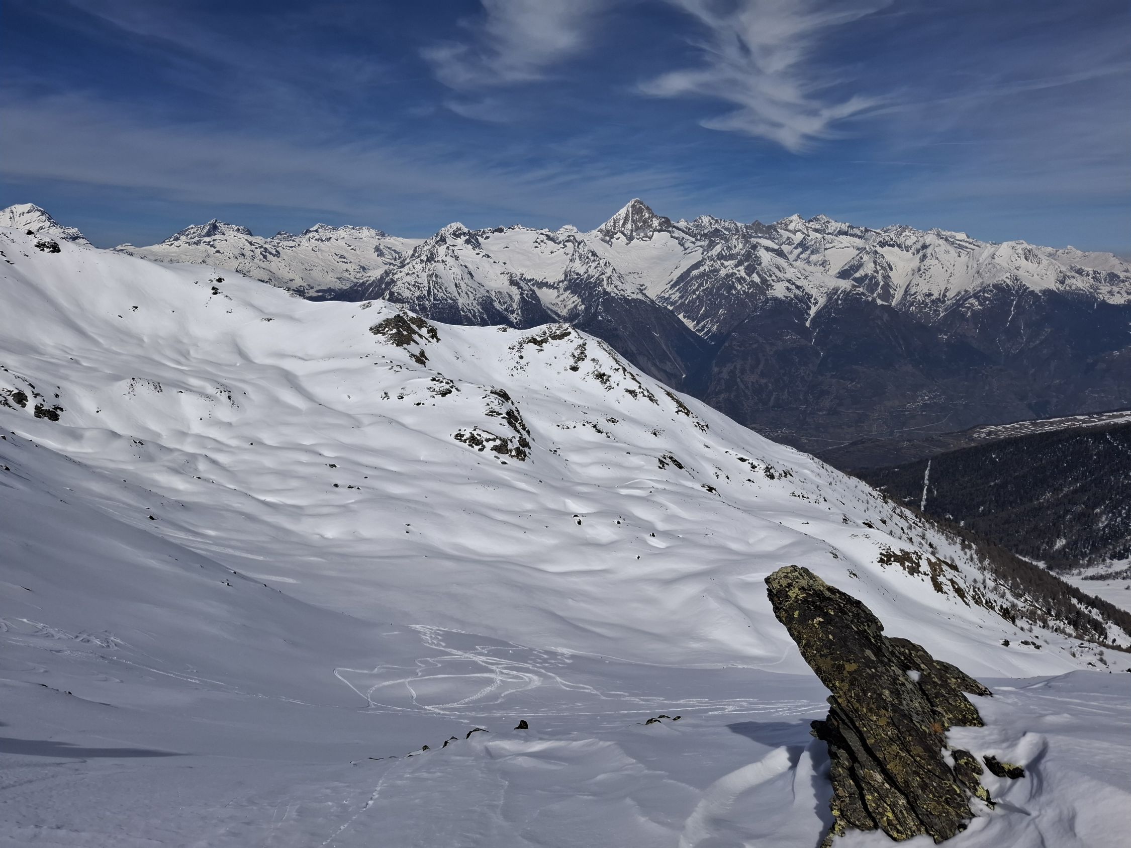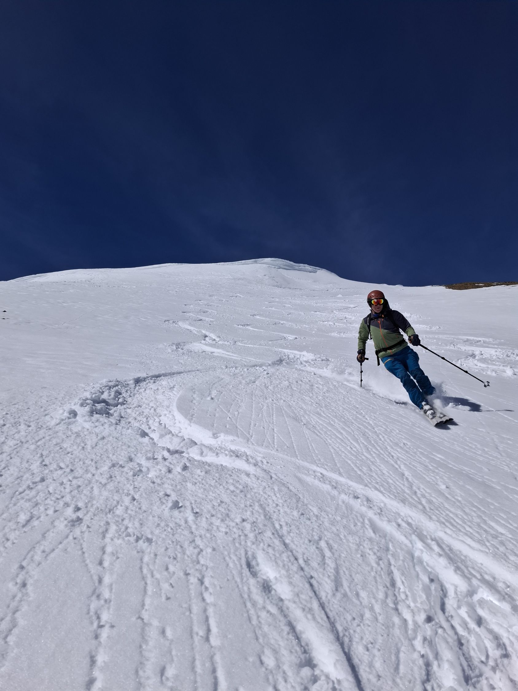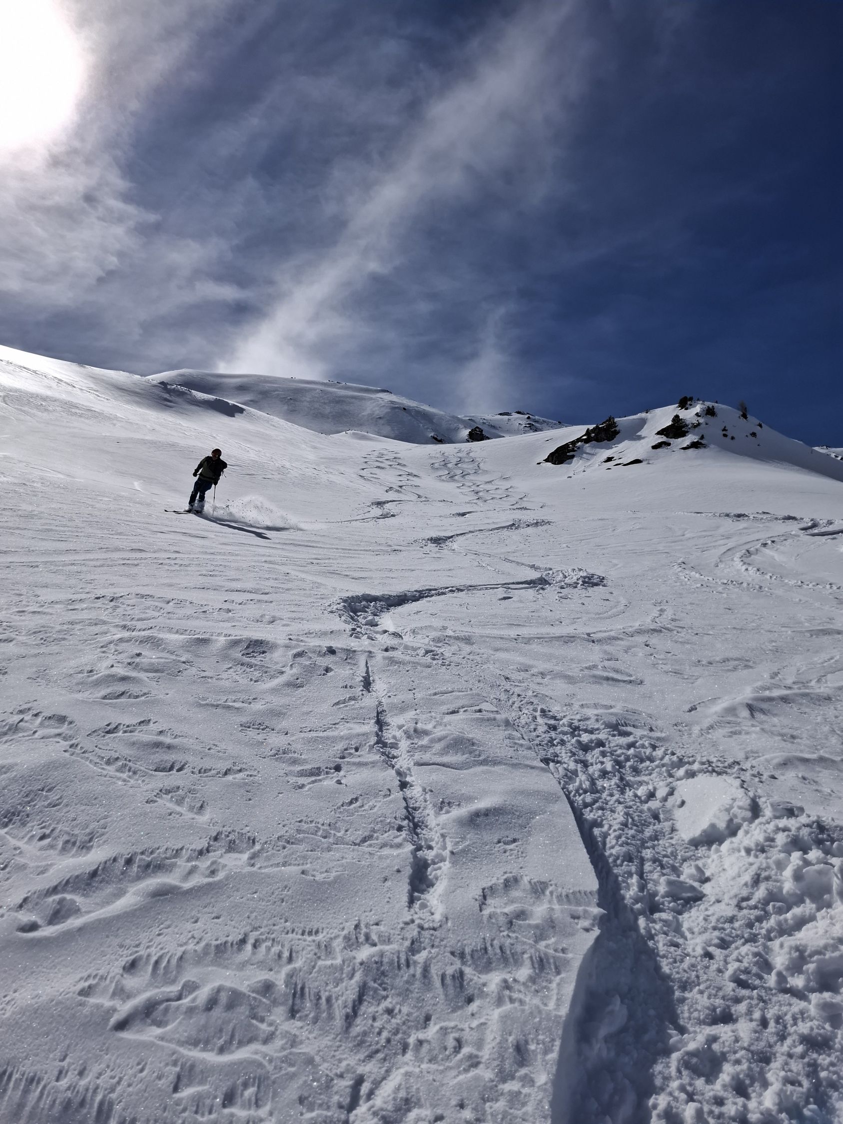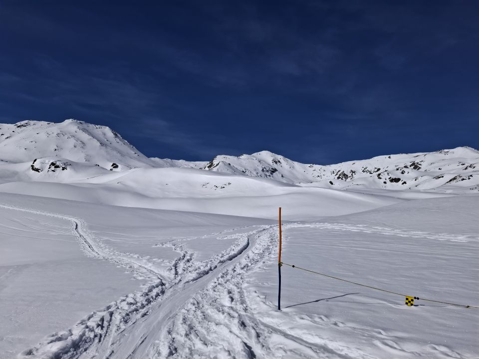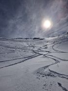Schnee: Je nach Ausrichtung und höhe. 20-30 cm Pulverschnee. Mal trocken mal angefeuchtet und etwas schwer. Aber noch sehr gut zu fahren.
