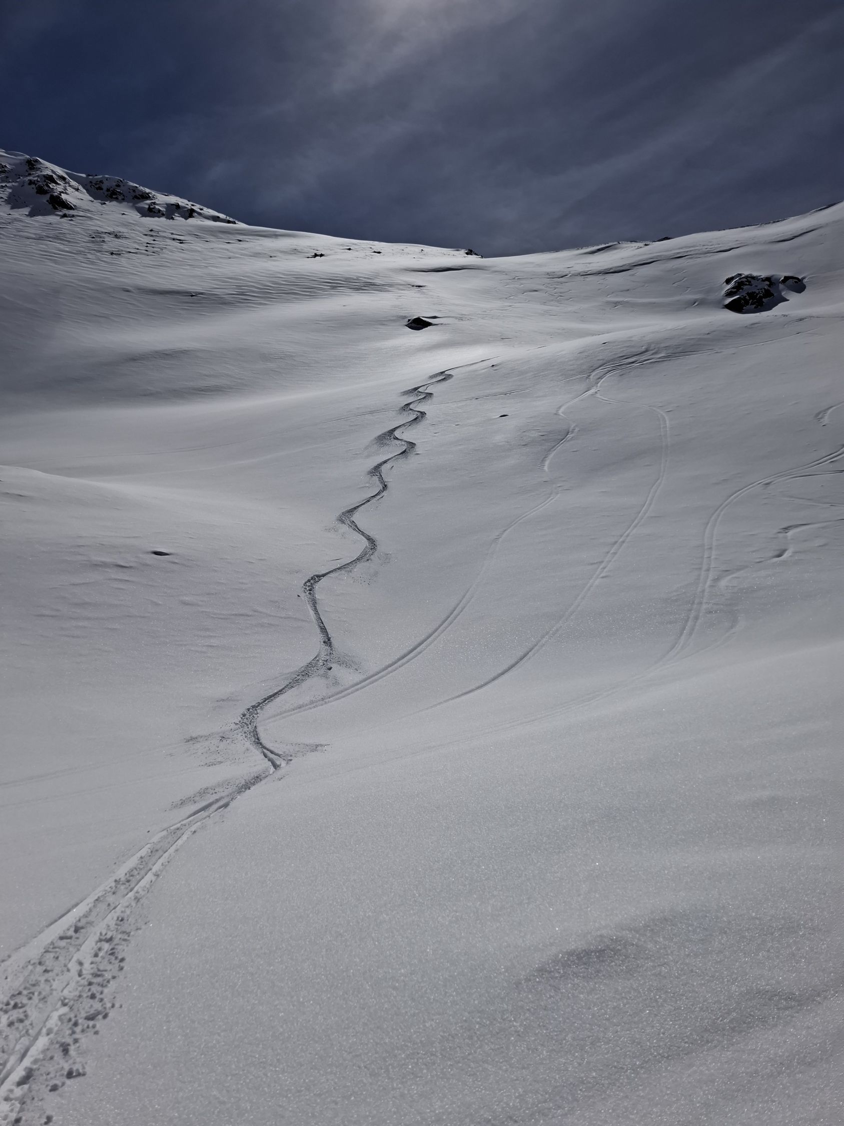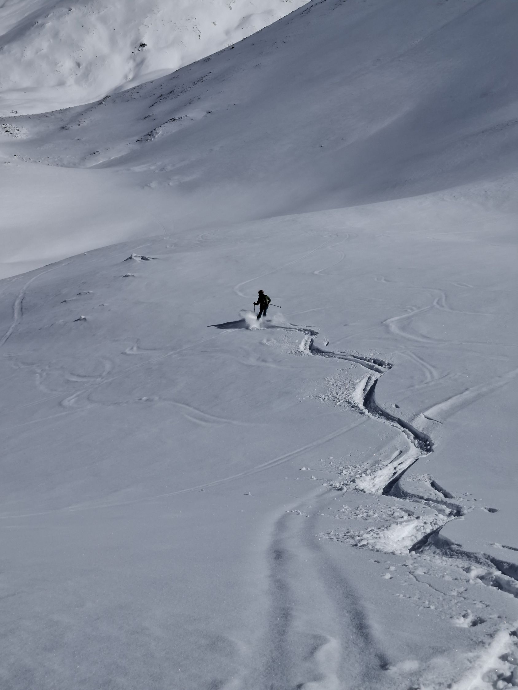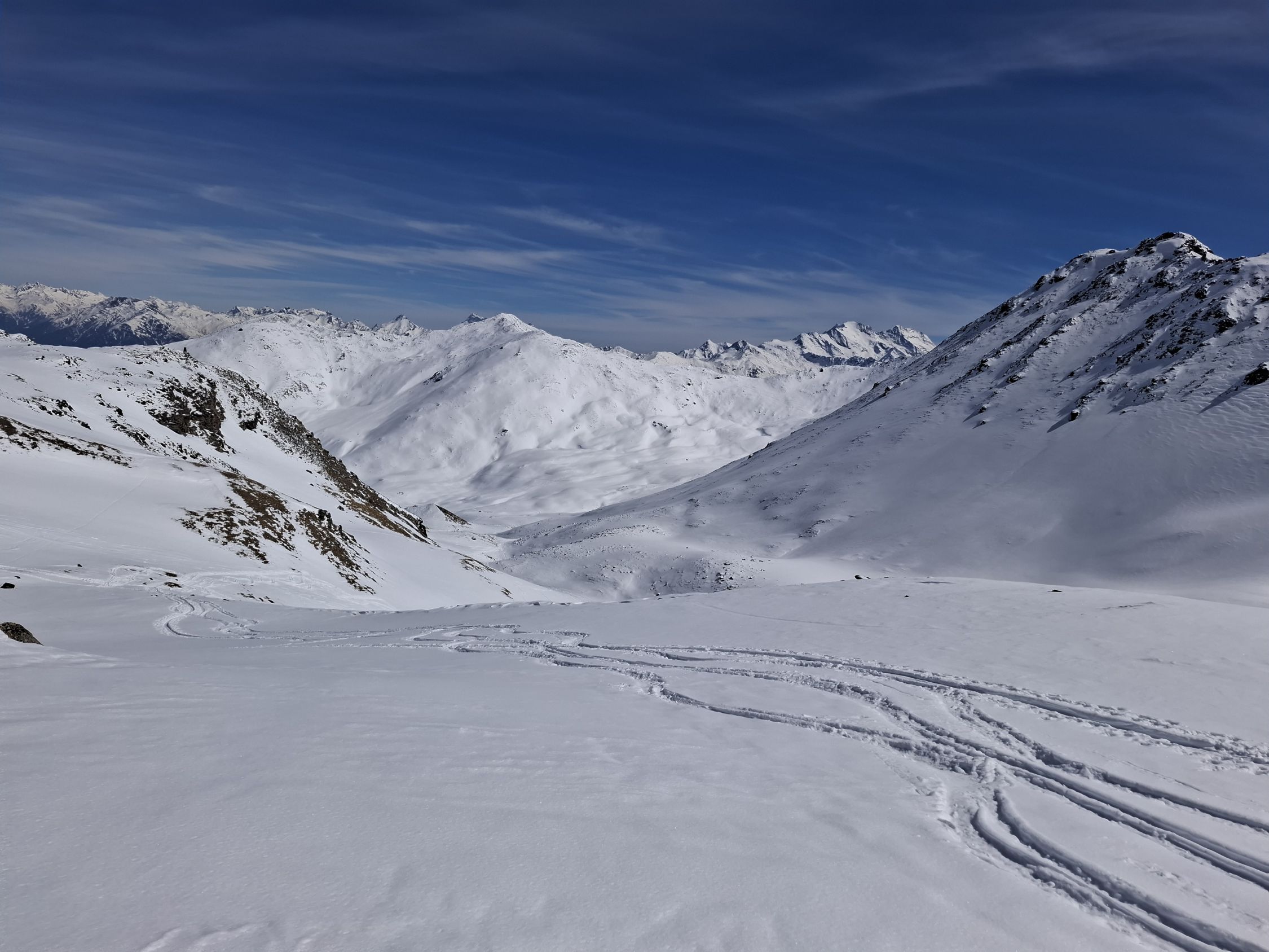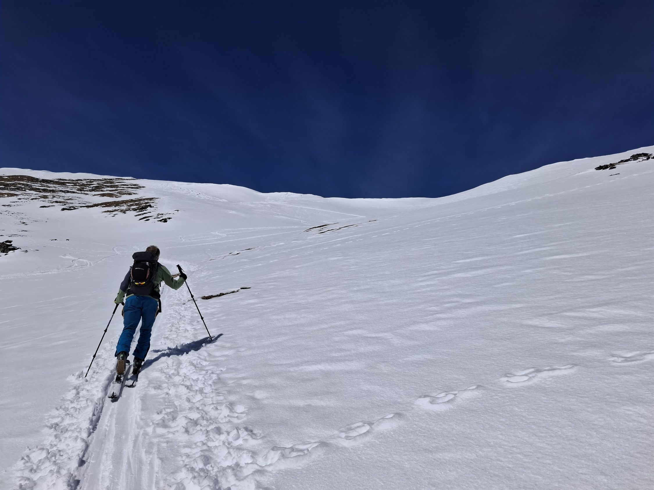 Schnee: Je nach Ausrichtung und höhe. 20-30 cm Pulverschnee. Mal trocken mal angefeuchtet und etwas schwer. Aber noch sehr gut zu fahren.