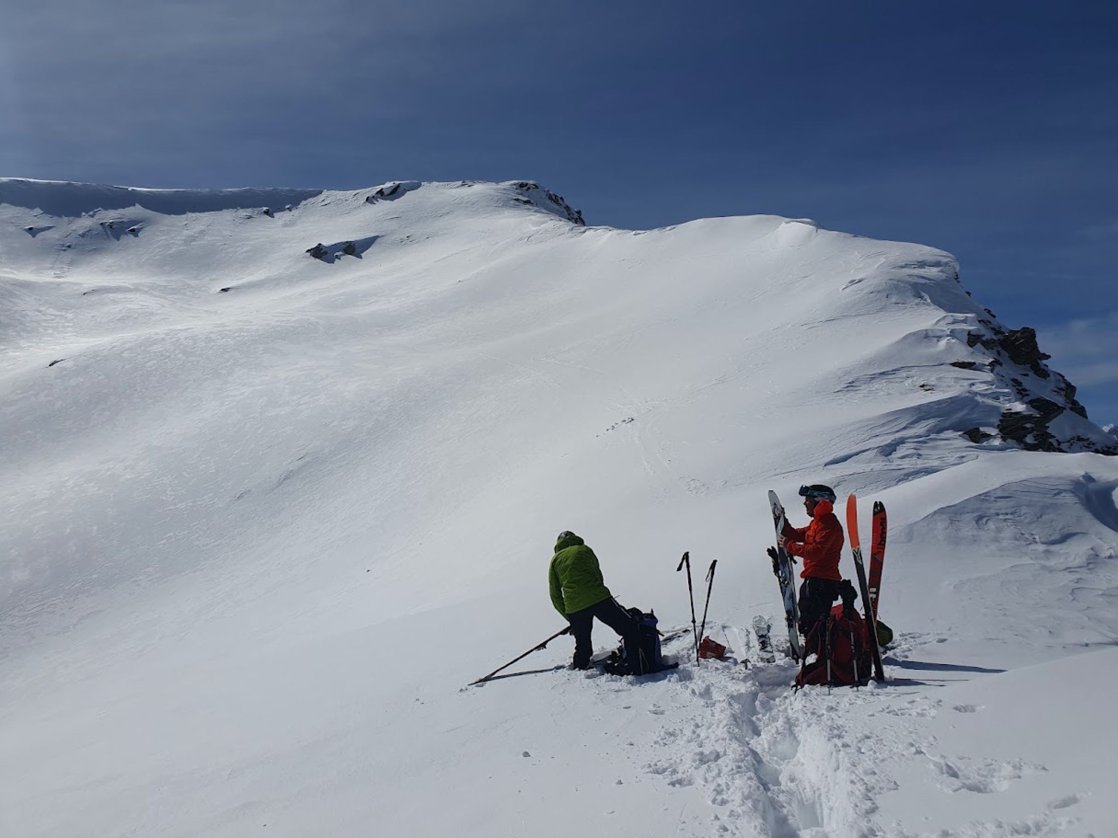 Die zu erwartenden Schneefälle werden wohl unsere Spurarbeit über den Grat zu Nichte machen.