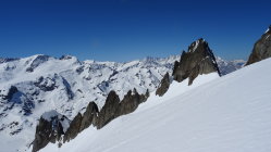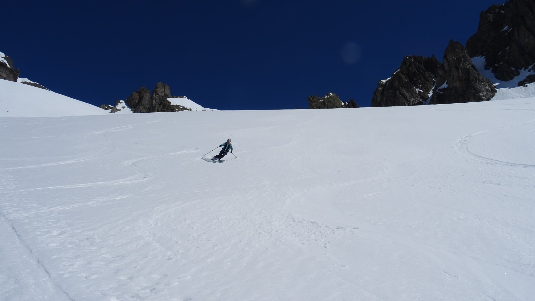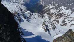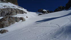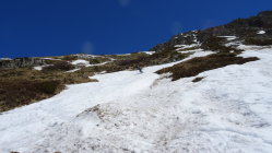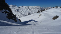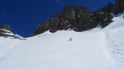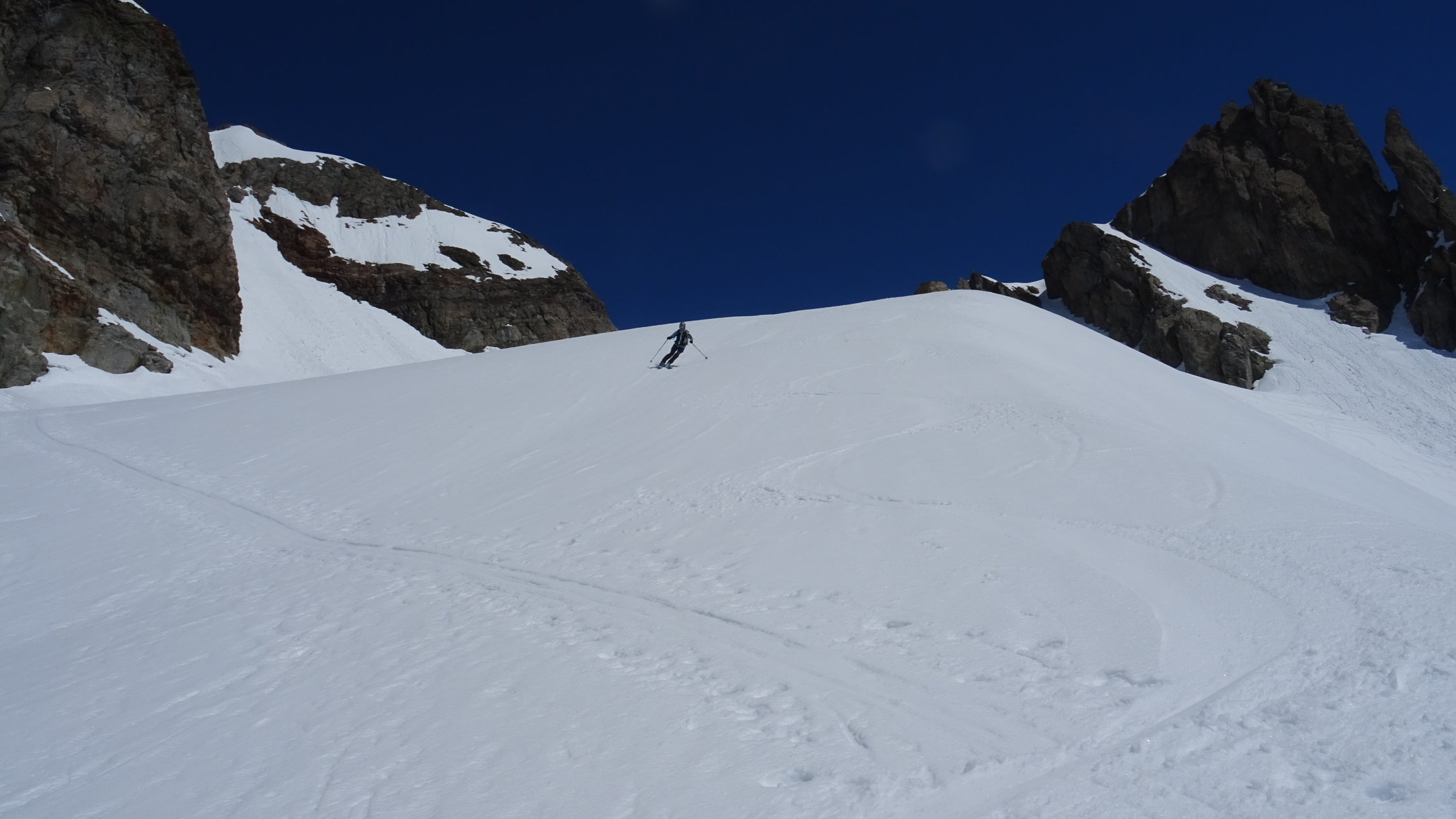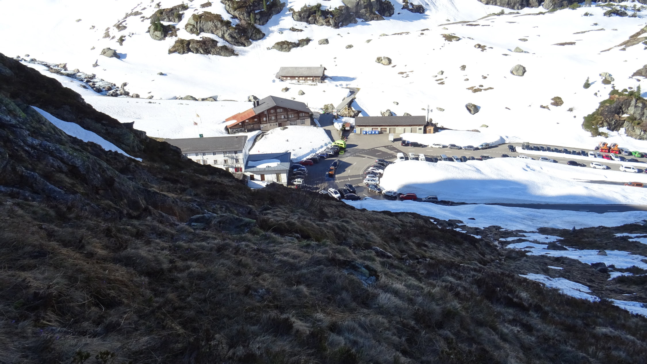 hat gepasst, traumhafte Sulzverhältnisse an breiten Hängen ohne Leute! Nur im untersten Teil war der Schnee Plüter. Von der Passstrasse aus fanden wir noch eine Möglichkeit bis zum Hotel Steingletscher abzufahren ohne die Skis abzuziehen (siehe Bilder).