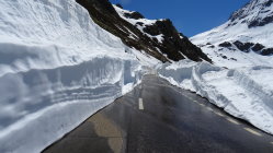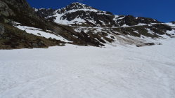 Tour noch lange machbar, es hat noch viel Schnee ab der Passstrasse. Ab Steingletscher müssen die Skis bald bis zur Strasse hochgetragen werden.