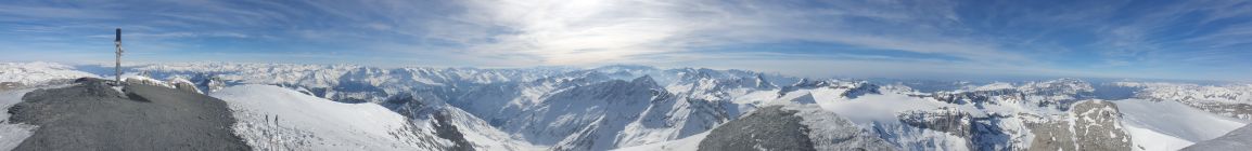 Alleine geniesse ich rund eine halbe Stunde die Fernsicht und bin erstaunt, dass kurz vor der Abfahrt ein Helikopter mich umkreist und sogar noch auf dem Glarner Tödi landet. Ich konnte nicht ausmachen was er genau wollte.