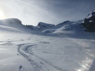 Auf dem Gletscher hat es eine sehr gute Spur im Pulverschnee drinnen. Die Schneerus hat aktuell zu wenig Schnee drinnen und wurde nicht gemacht.