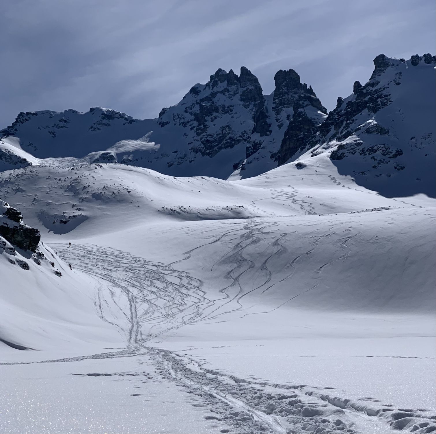 Im Aufstieg zur Wildseelugge kann man zwischen klassischer Serpentine und einer ambitionierten Fastlane wählen, die Abfahrt zum See gelingt im feinen Pulver problemlos, ebenso der Wiederaufstieg am Nachmittag.