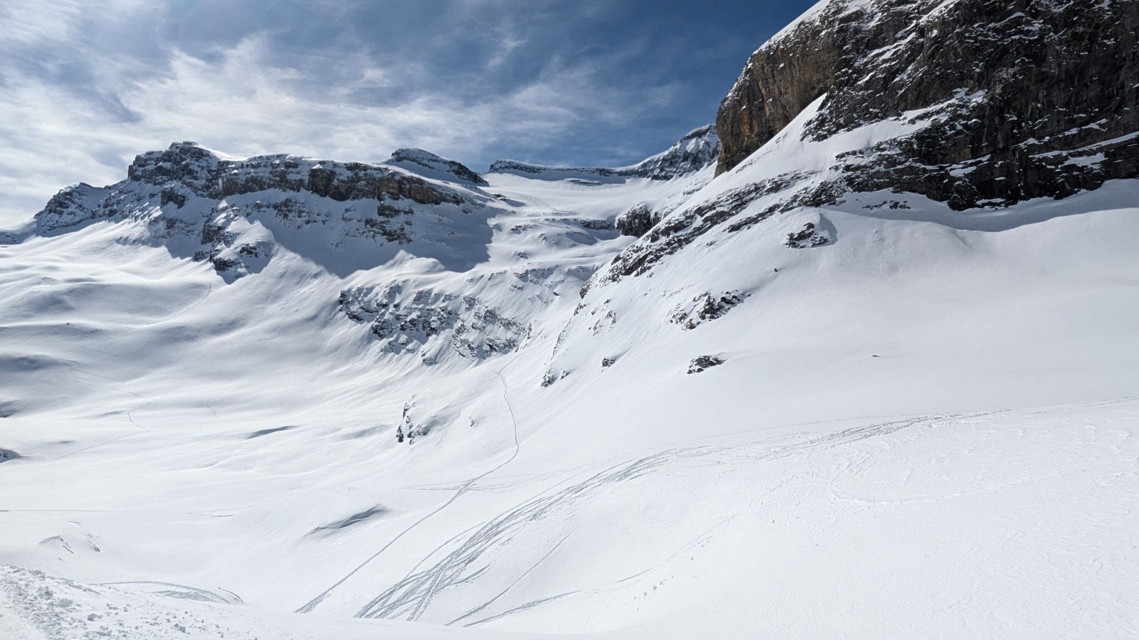 von der Gemmi wurde Hauptsächlich der Mittelgipfel besucht, am Grossstrubel war vor mir nur eine Person welche gespurt hatte.