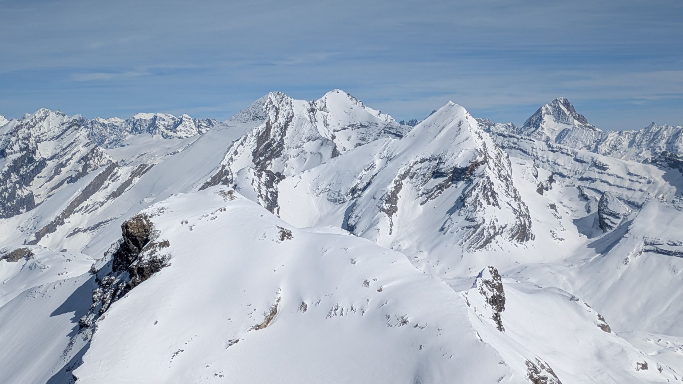 Wunderbares Wetter und Schneeverhältnisse. Am Wildstrubel Wertgipfel starker Wind am Grossstrubel Gipfel dann praktisch windstill.
