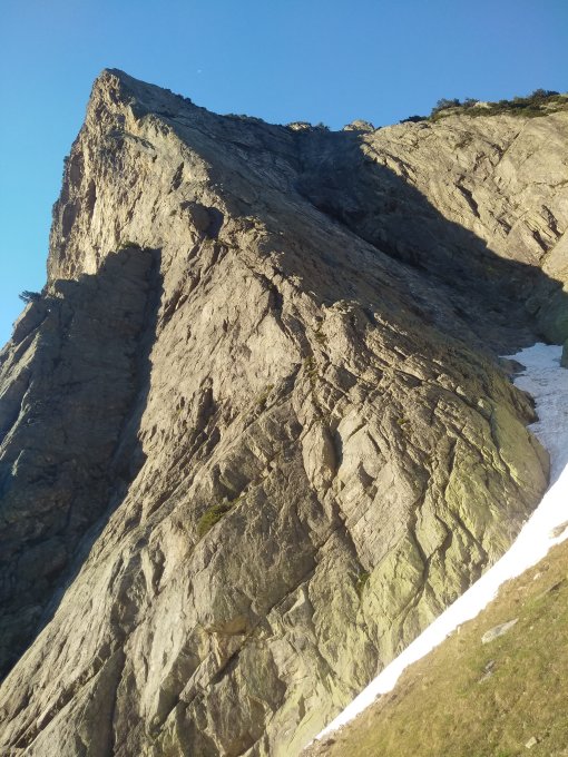 Im Zustieg zu den "normalen" Südwandrouten ist noch ein Schneefeld zu überqueren. Falls dieses hart ist, geht's nicht (safely) ohne alpine Ausrüstung. Zur tiefer startenden Abadia kann man den Schnee untenrum umgehen. Nach dem Abseilen oder auch dem Fussabstieg ebenfalls Schneekontakt.
