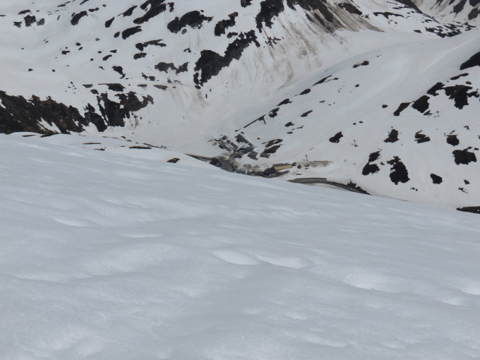 Die Schneedecke ist ab Passhöhe gut. Nassschnee auf mehr oder weniger festem Untergrund.