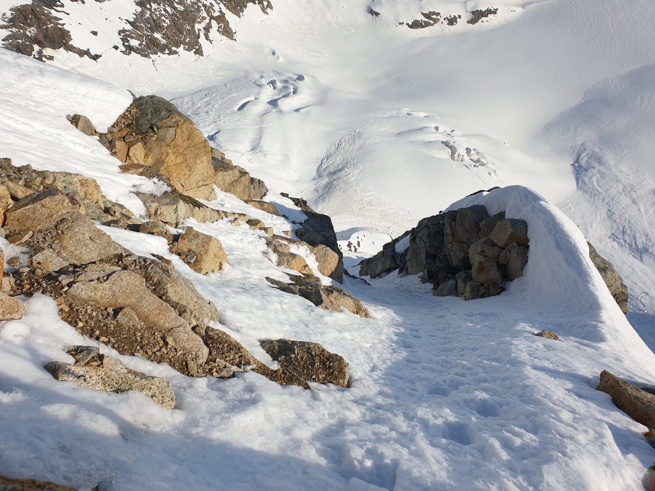 Unterer Teil bis zur Querung super Trittschnee. Ab der Querung nicht gesetzter locker Schnee der das vorankommen etwas verlangsamt. Bin im oberen Teil direkt am Grat geblieben was denke ich etwas anspruchsvoller war als wenn man die Flanke hoch gehen würde und erst zum Schluss rechts zum Grat quert.