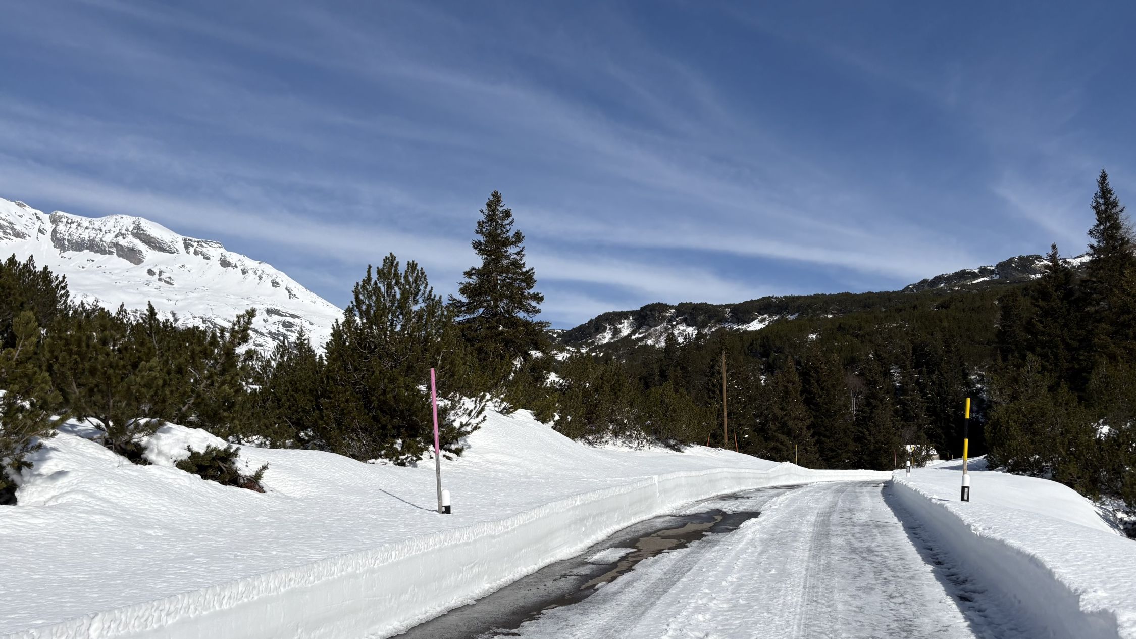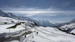 Die Strasse bis zur letzten Kurve ist geschleudert und kann die Skis tragend begangen werden.
