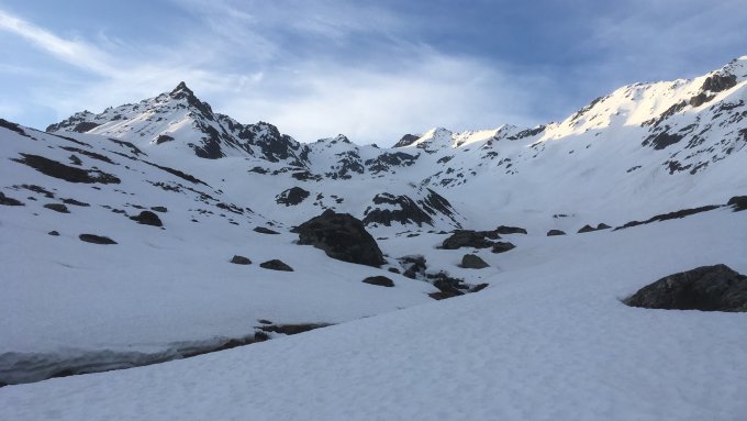 Wir habe den Versuch unternommen, gleich direkt die Westflanke hochzusteigen, was sich eher im Spätwinter als im Frühling lohnt.