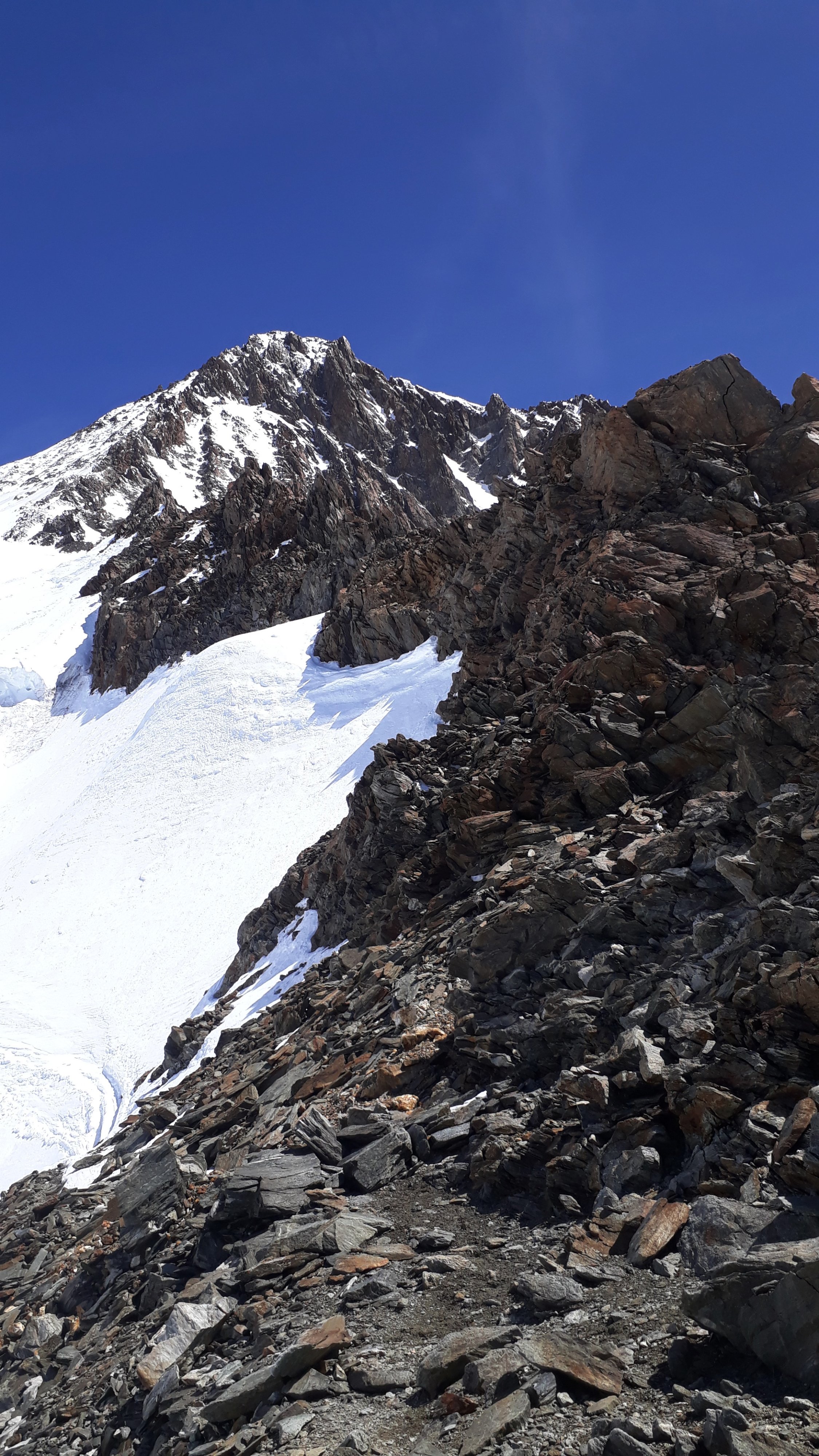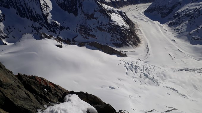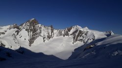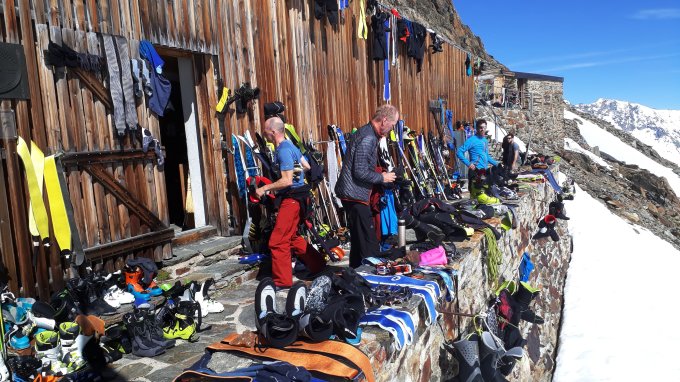 Wir wählten den Start durch die kleine Materialhütte.Bis zum Frühstücksplatz sehr eisig. Harscheisen empfehlenswert. Tragpassage problemlos, da oft auf "Wanderweg" ohne Schnee. Dann wieder eisig bis Hugisattel. Von dort kombinierte einfache Kraxelei auf Fels und Schnee. Ausweichmöglichkeiten hatte es viele, Leute auch! Sehr warm. Früh los. Aussicht war traumhaft. Abfahrt leicht aufgesulz. Perfekt!