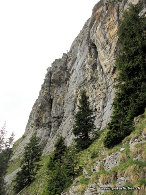 Bedeckt, föhnig, ohne Wind angenehm warm. Der Zustieg und Abstieg wurden letzthin unterhalten, tiptop, danke. Der Steig und Felsen sind trocken und in einwandfreiem Zustand. Die Bügel sind etwas kühl. Im oberen Teil wurden einige Stämme ausgewechselt.