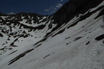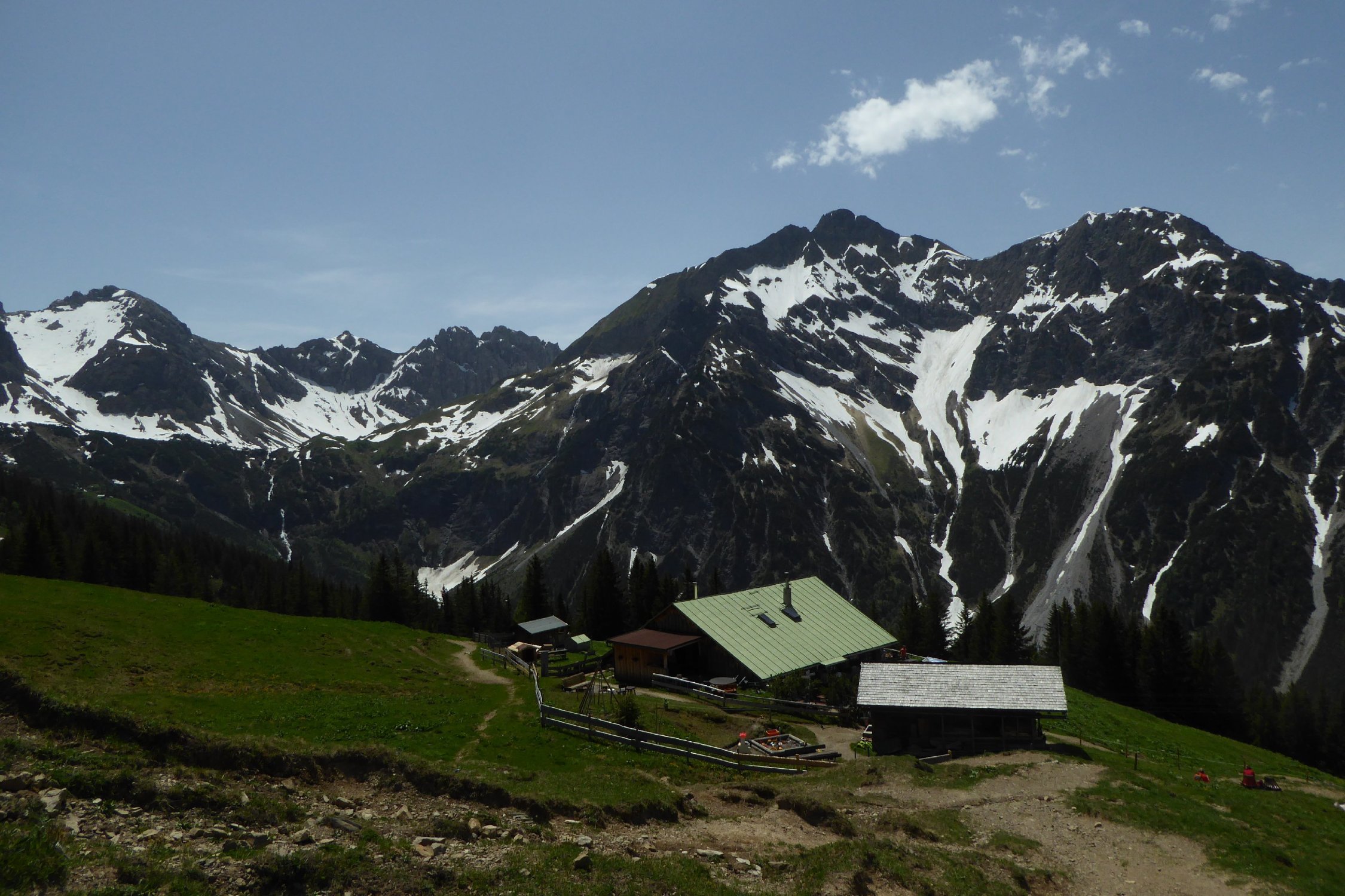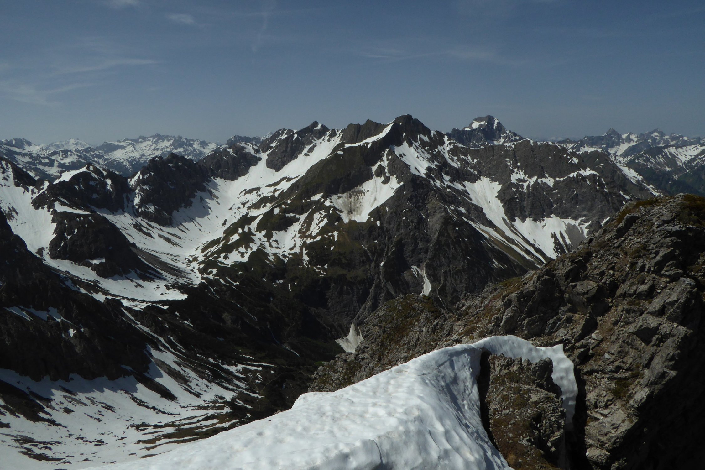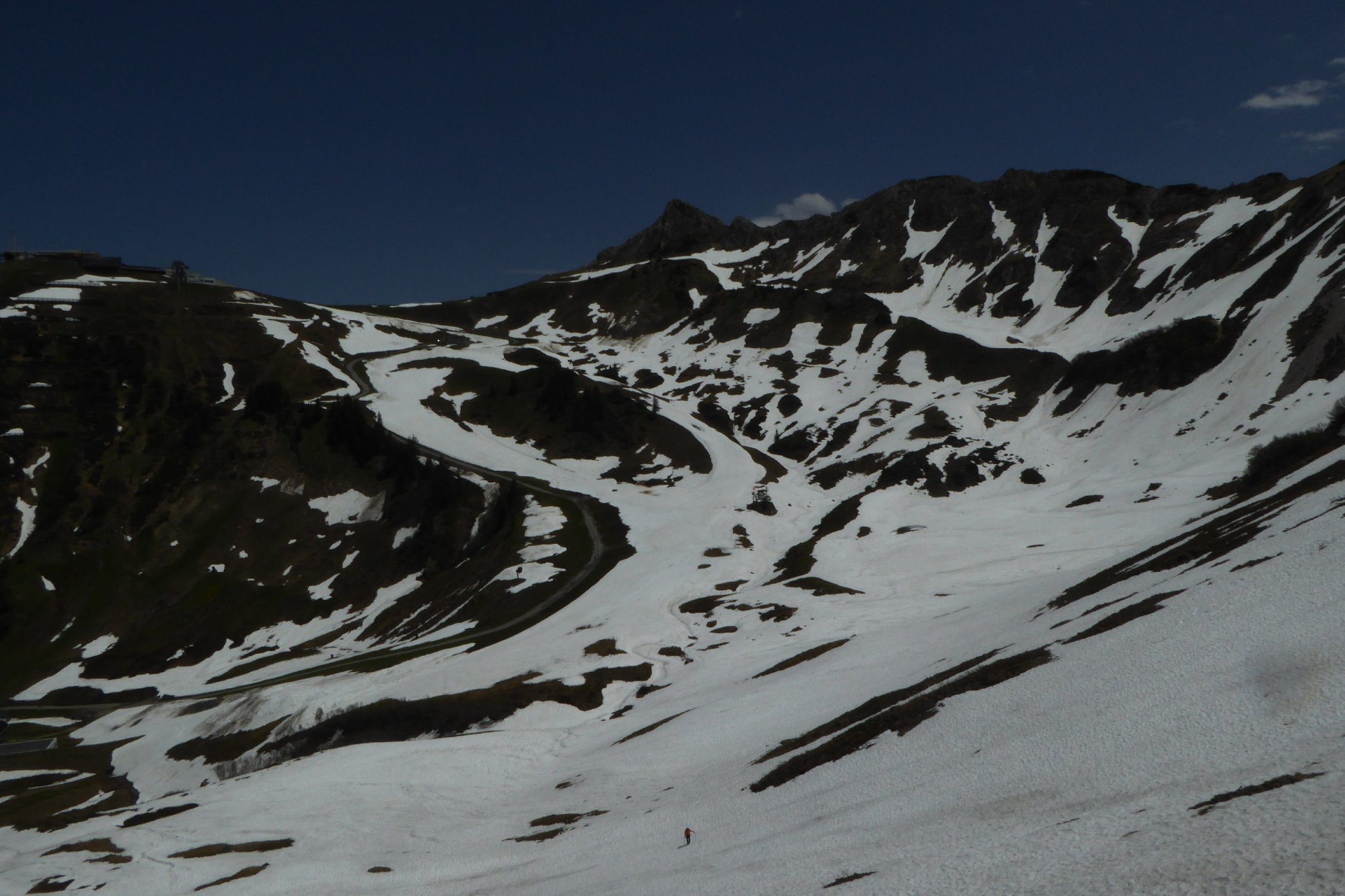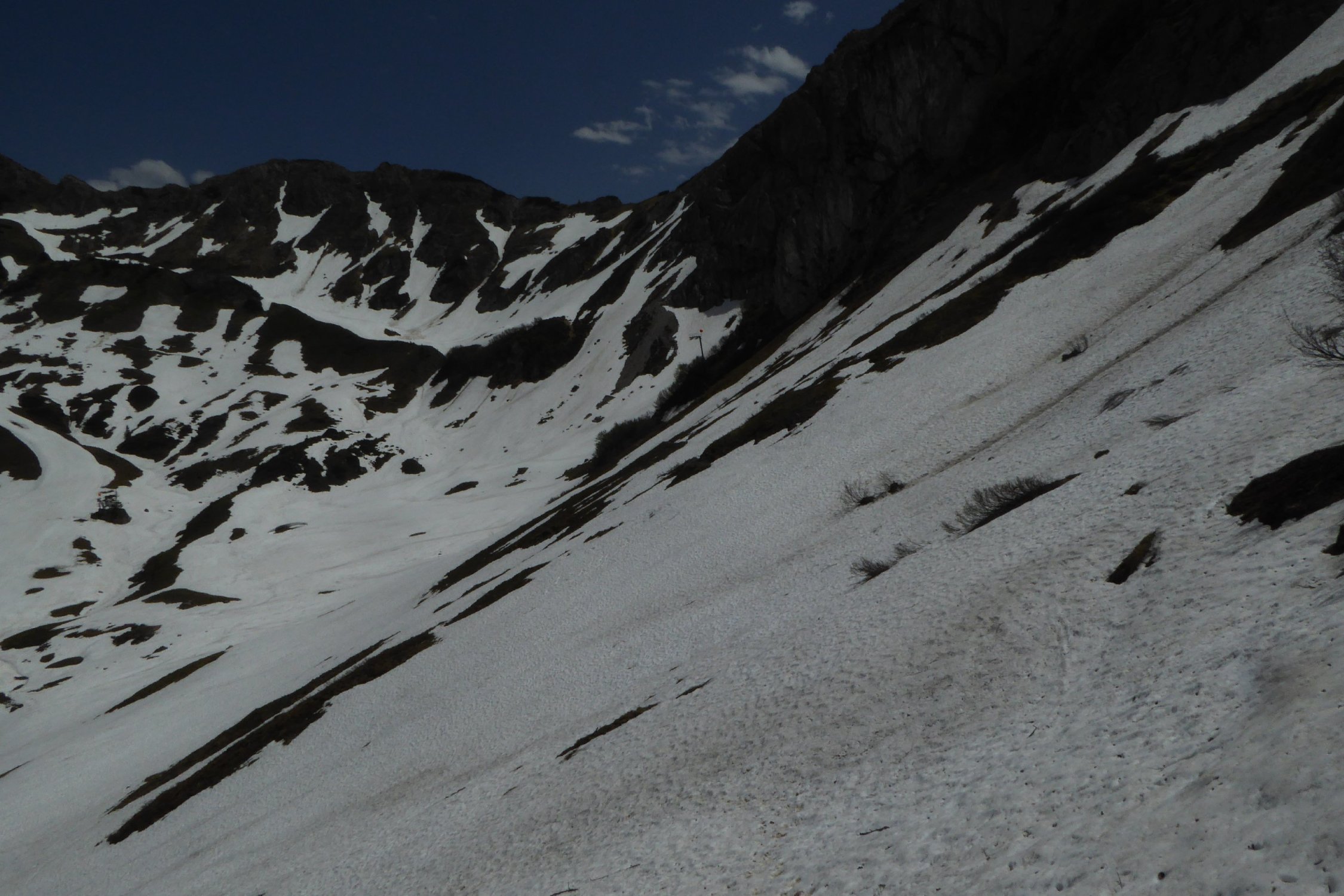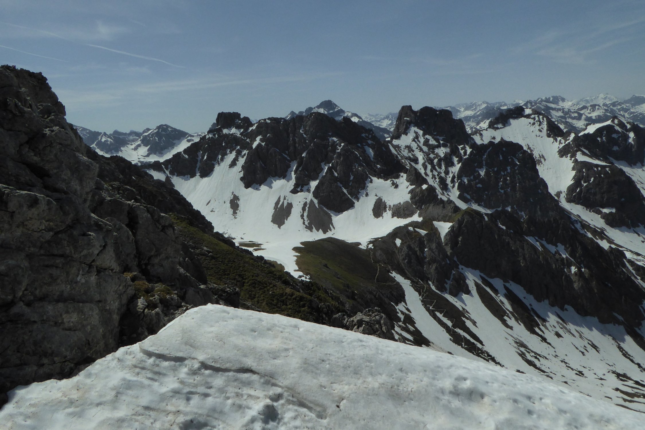 Warmatsgundkopf Schneefrei. Der Weiterweg über Grat zur Walser Hammerspitze kaum Schneeberührung, einige kurze Felder konnte man umgehen. Auch der Übergang zur Hochgehren konnte man trocken begehen. Abstieg zurück bis Mitte Grat, dann direkt auf Schneefelder runter bis kurz vor Wannealp. Bis Innerkuhgehren alles frei. Zum Kuhgehrensattel kurze Altschneefelder, ab Sattel bis Bergstation quasi noch durchgehend Schnee. Dieser war aber gegen Mittag weich genug, ohne div.Hardware einzusetzten, bin weiter runter zur Piste und dort hoch. Hinweis dazu, solche Querungen sollte man trotzdem sicher gehen können. Gesamt: ca. 900Hm in 5 Std.