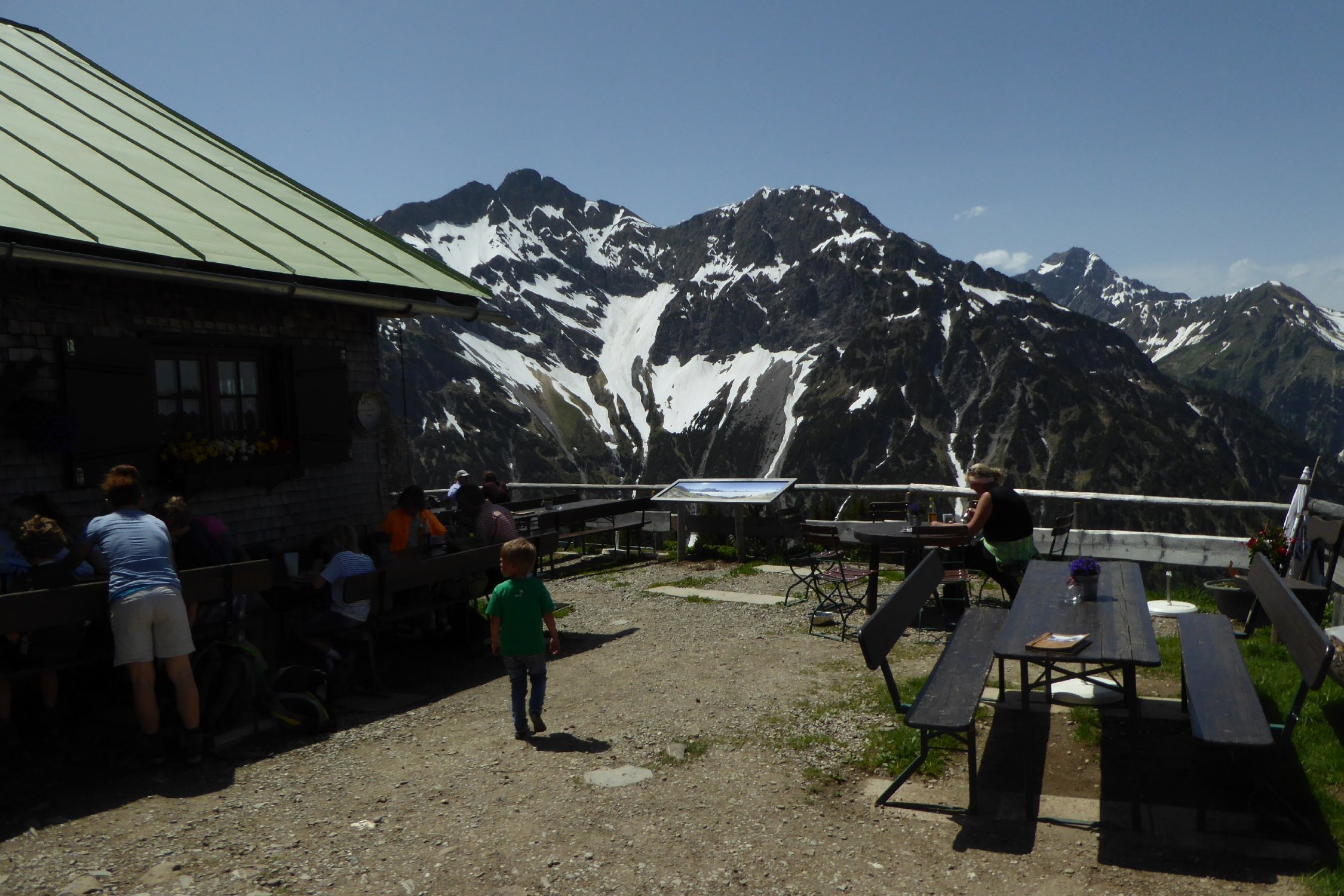 Kaiserwetter Vormittags, Fernsicht etwas dunstig. Dafür mannigfaltige Blütenpracht, vorwiegend Blau und Gelb. Innerkuhgehren stark frequentiert (Wartezeiten um ans Bier zu kommen).