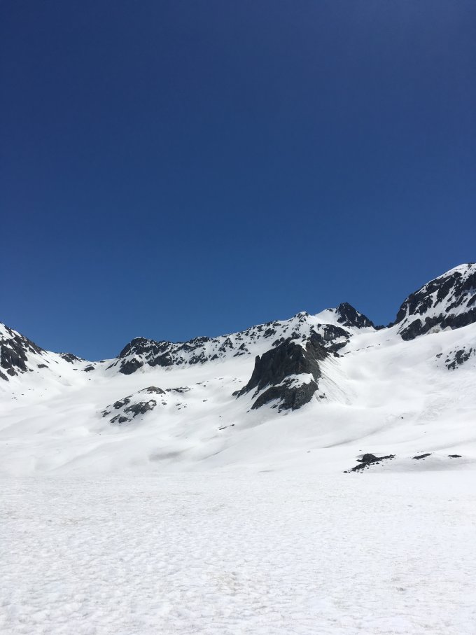 Im Gebiet liegt noch viel Schnee. Spontane Nassschneelawinen im Gebiet beobachtet.