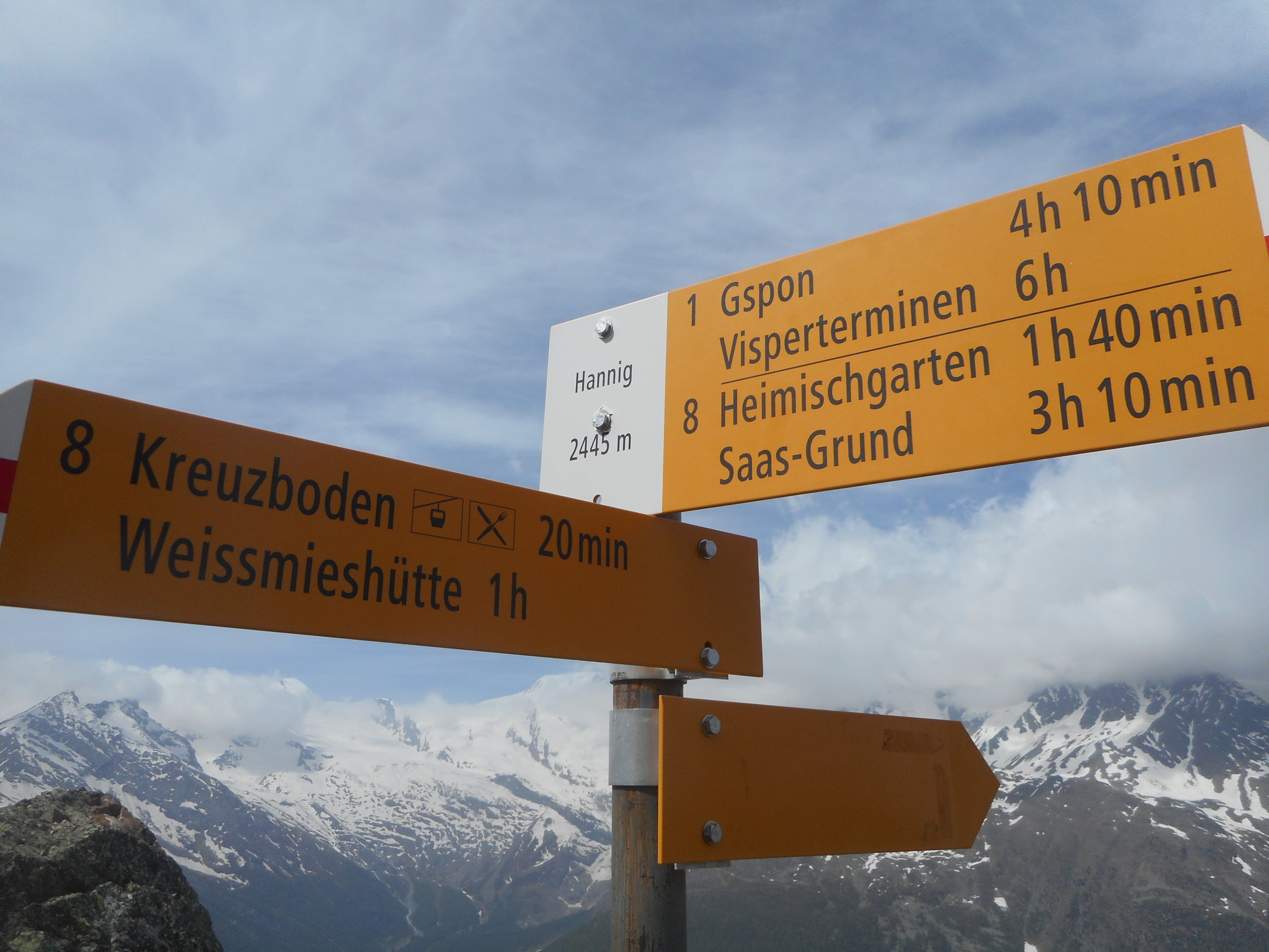Der Höhenweg kann nach Saas Grund oder Kreuzboden beendet werden. Die Wanderung ist auch in umgekehrter Richtung von Kreuzboden nach Gspon empfehlenswert. Die Wanderung bietet sich als Ganztageswanderung im Sommer und Herbst an.