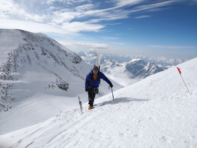 am Mittwoch 12. Juni start um 23:30 am C2. Westgipfel um 8:30 gemeinsam mit Peter und Gerhard erreicht. In 45min bei besten Verhätnissen 2000 Hm bis zum Camp 2 abgefahren. Meine 12. Elbrusbesteigung (dieses Mal für den DAV Ravensburg unterwegs)