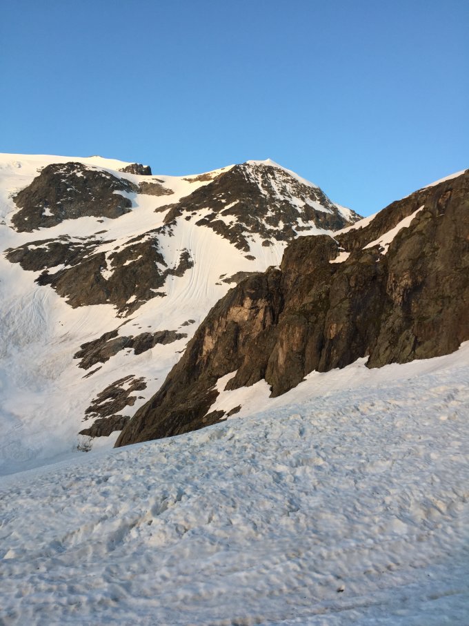 ganze Strecke guter Sommerschnee, Abfahrt um 8h