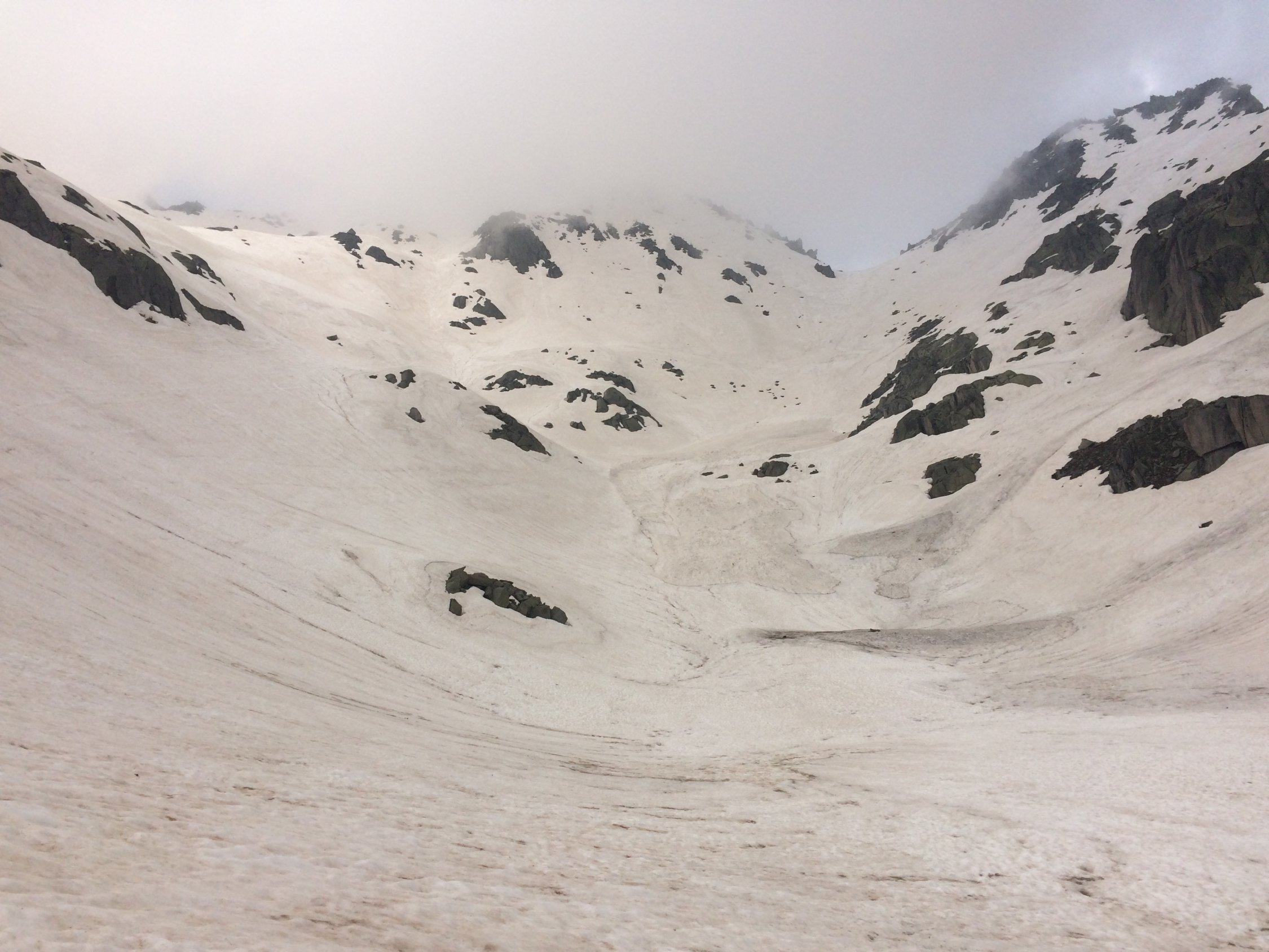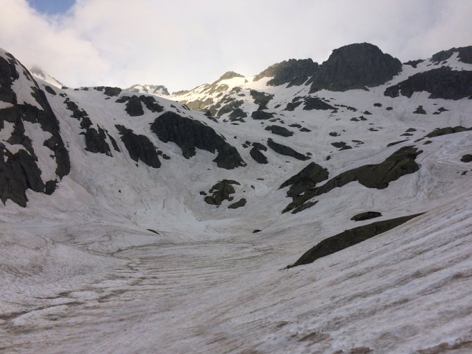 Ab Pass durchgehend gut Schnee, ab Vallettatal noch sehr viel Schnee, leichter Sulz