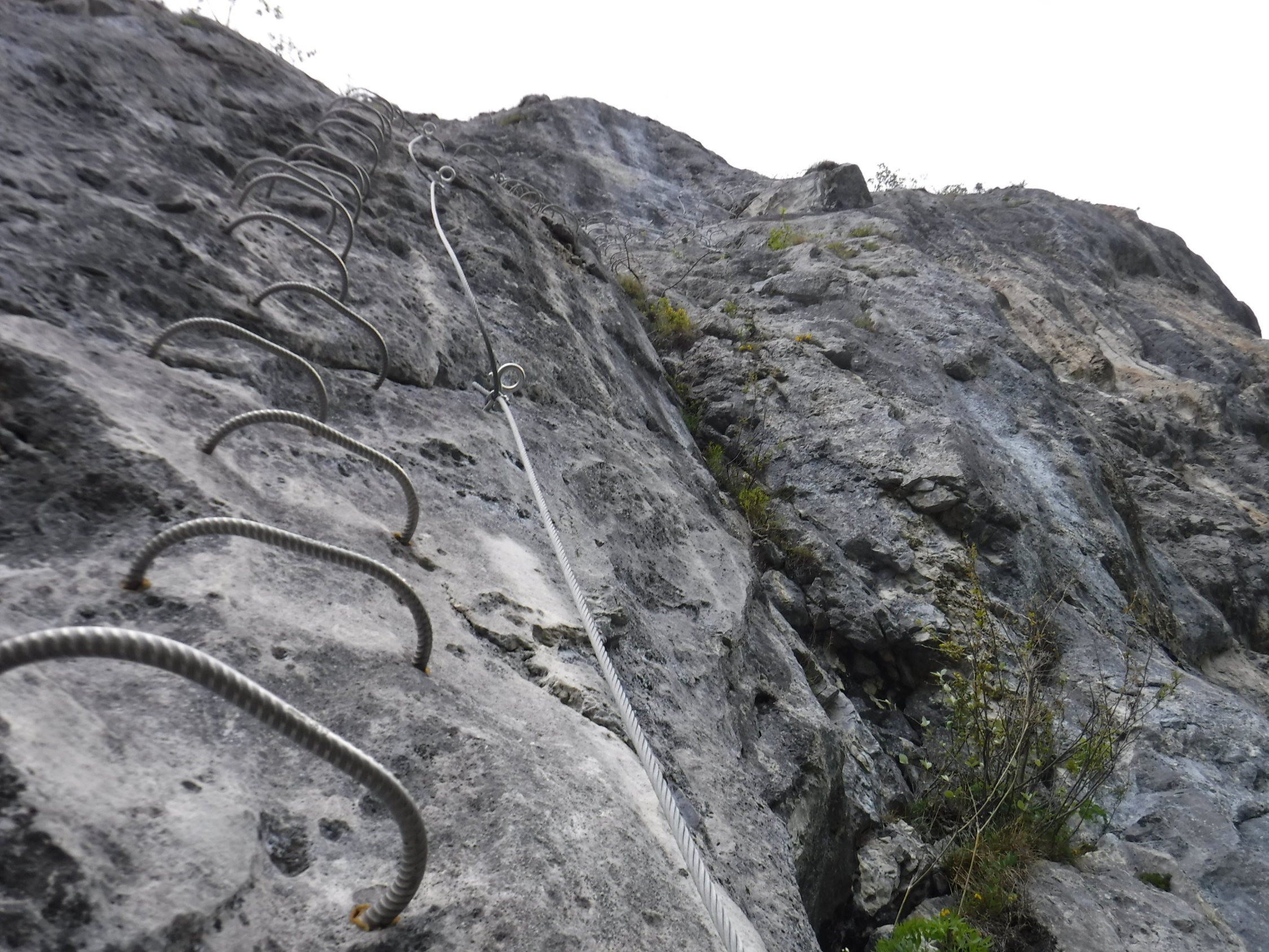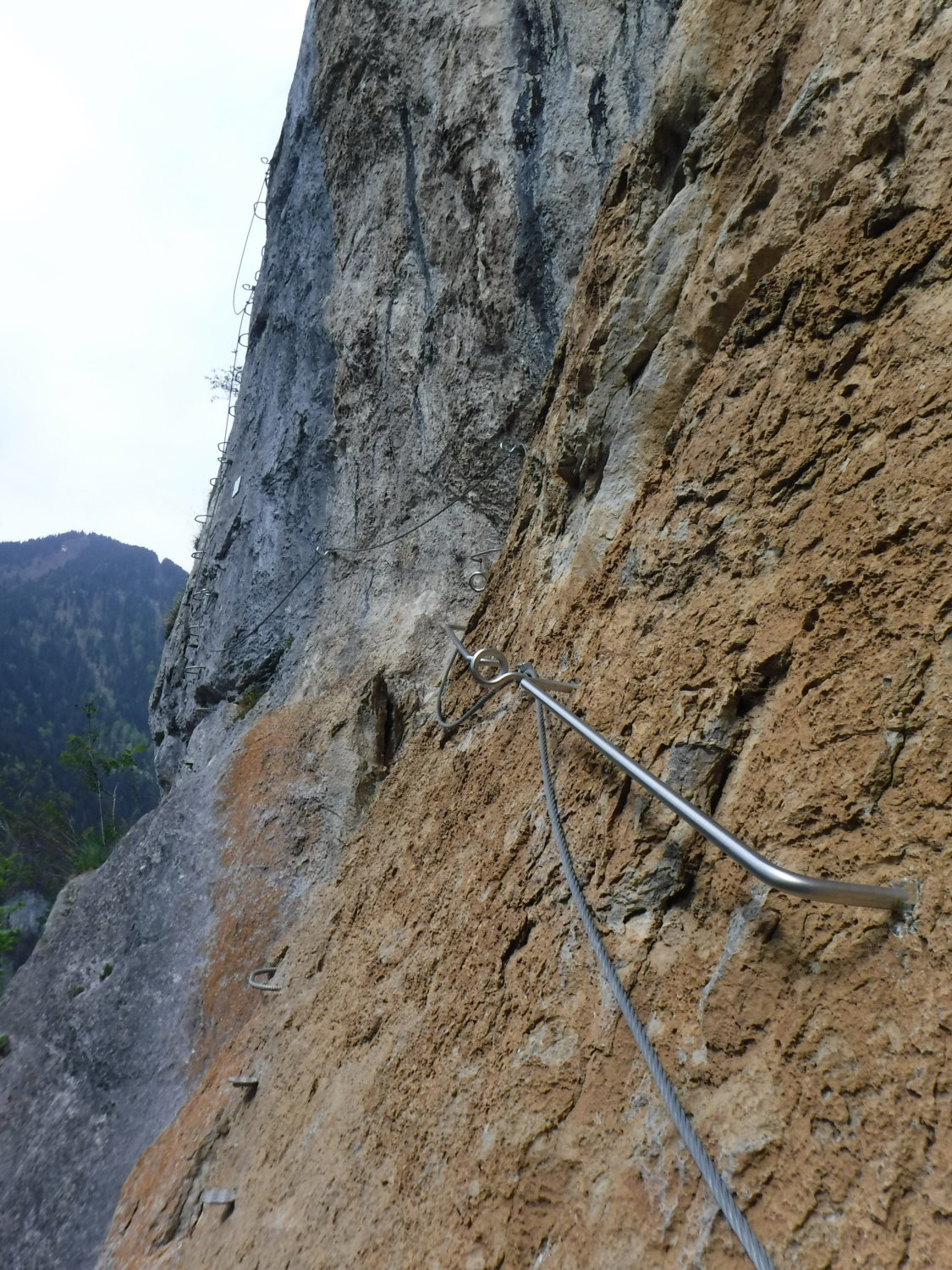 Für die schwere Route sollte man eine Rastschlinge, bzw. Express-Schlingen dabei haben, ggfs. zum Ausruhen der Arme. Infos: https://www.valleedaulps.com/medias//images/prestataires/52958-8482_sitraloi847625_257587_viaferrataficheinformation.pdf