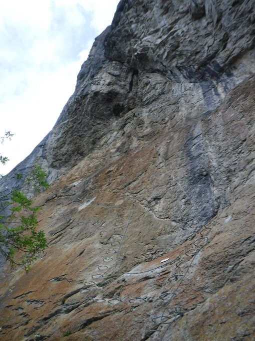 Für die schwere Route sollte man eine Rastschlinge, bzw. Express-Schlingen dabei haben, ggfs. zum Ausruhen der Arme. Infos: https://www.valleedaulps.com/medias//images/prestataires/52958-8482_sitraloi847625_257587_viaferrataficheinformation.pdf