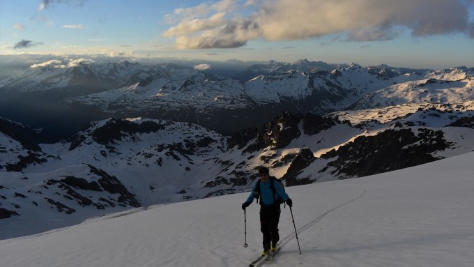 Vom Skidepot bis zum Gipfel strenges Spuren, teils Knietief.