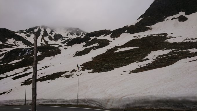 Start um 7:00 bei tiefen Wolken. Schnee ab der Straße. Meist gut tragender Sommerschnee, nur an wenigen Stellen tiefer.