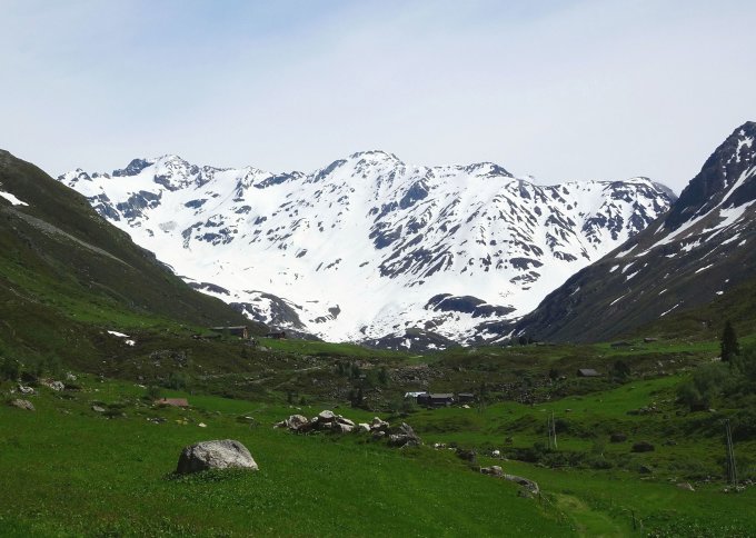 Die Tragepassagen werden bei der angekündigten Hitzwelle wohl schnell länger werden, auch im Bereich des Scalettapasses wird die Schneeauflage langsam dünn und das Gelände steiniger. Nordabfahrt vermutlich noch etwas länger gut.