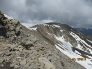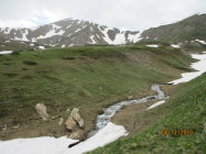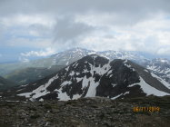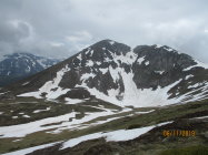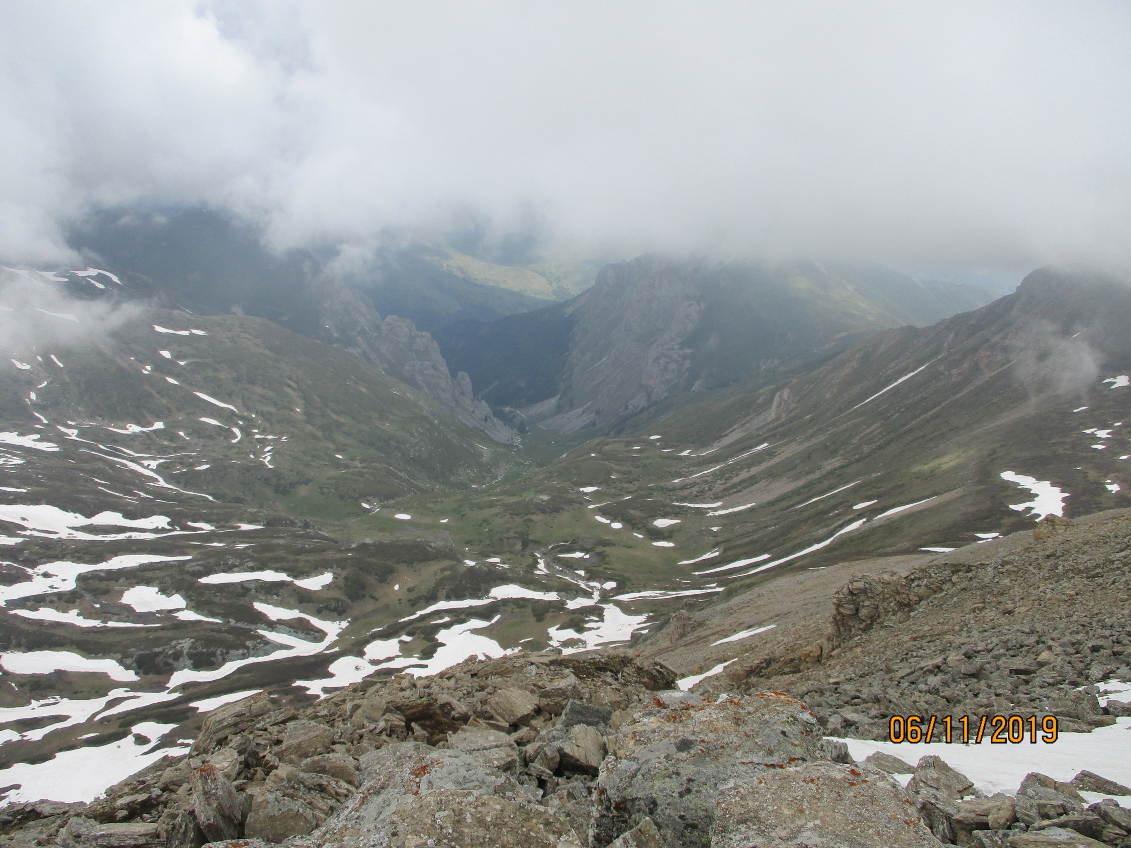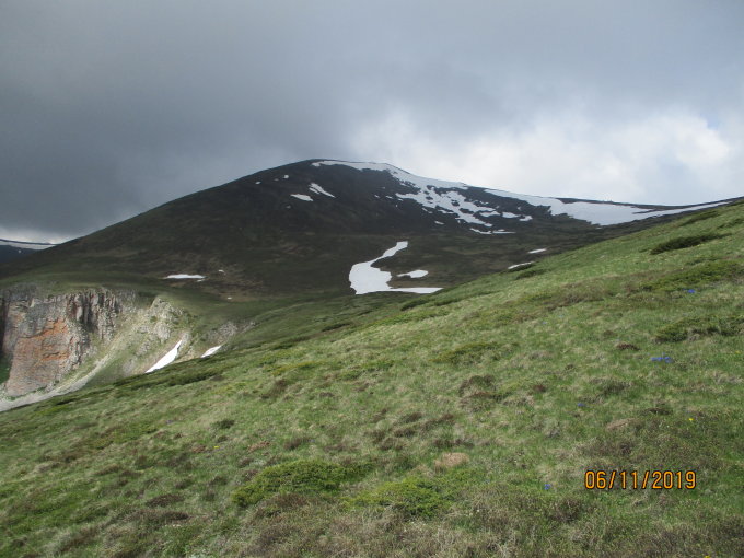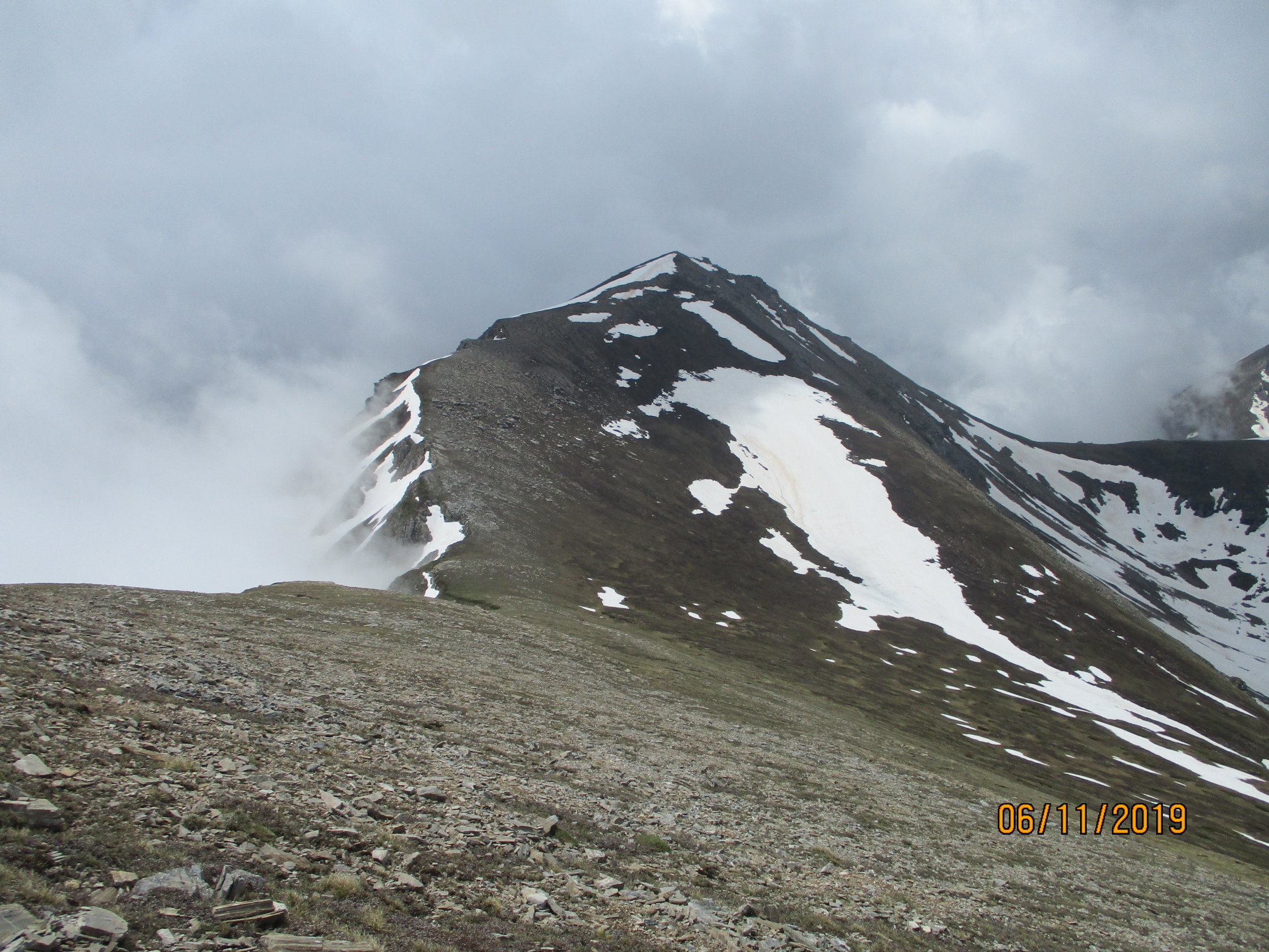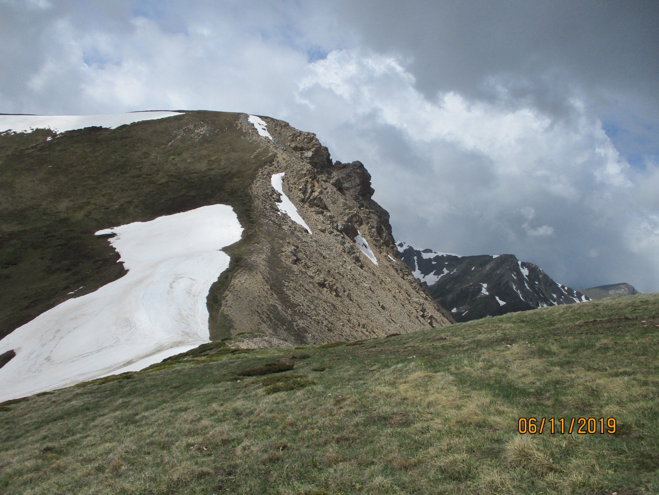 Hätte ich es dem polnischen Pärchen gleichgetan, die bereits um 5 Uhr morgens aufgebrochen waren, hätte ich einen Bergtag mit überwiegend wolkenfreien Verhältnissen erlebt. Bei mir zog immer wieder abkühlendes Gewölk herein, dennoch hatte auch ich Glück mit der Gipfelpanorama, welches Aussichten über nahezu den gesamten Sar-Planina-Grenzkamm zwischen Mazedonien und Kosovo, als auch Blicke über die Ebene von Tetovo und Gostivar hinweg gewährt. Keine Niederschläge, kein Gewitter. Die wenigen zu querenden Schneefelder waren durchwegs harmlos, der verdichtete Schnee trug gut.