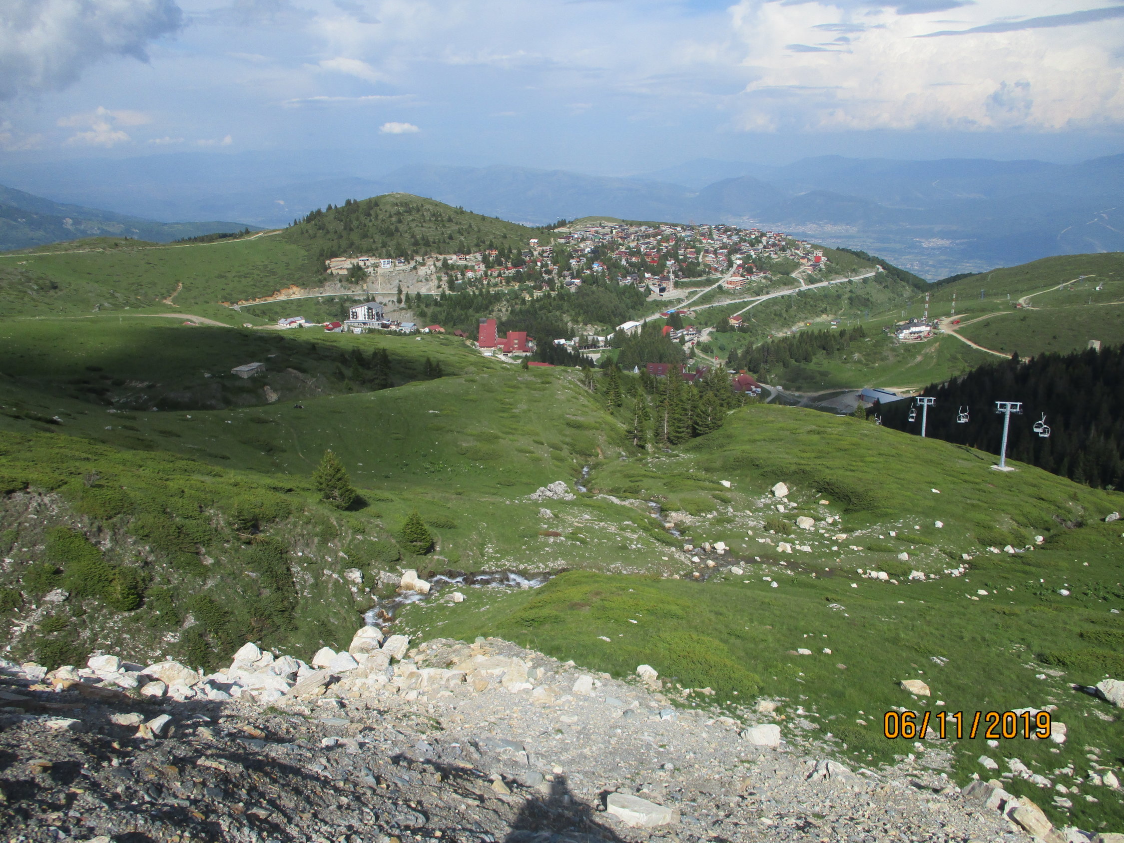 Popova Sapka glich jetzt im Juni fast einem Geisterort. Die meisten Hotels und Ferienhäuser waren verlassen. Ich war im Hotel Scardus für € 32.- im Einzelzimmer mit Frühstück sehr gut aufgehoben. Während sich tagsüber auch immer wieder einmal Tagsausflügler auf der Hotelterrasse blicken ließen, war ich abends einer der wenigen verbliebenen Gäste. Dann entfaltete der sonst wirklich nicht sonderlich schöne Ort eine wunderbare Ruhe, wo auf dem Balkon nur das Rauschen des Bergbaches zu hören war. Für die Abendtemperaturen brauchte es draußen durchaus noch eine Jacke.