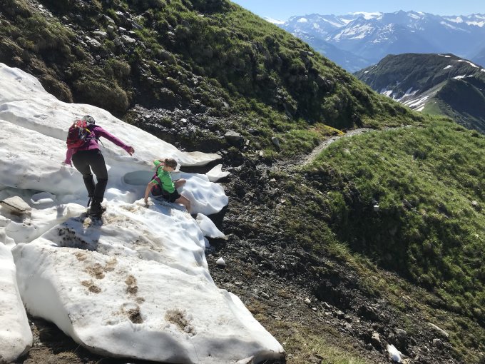 Obwohl die nächsten Tage sehr heiss sein sollen, bleiben gewisse Abschnitte noch länger nass. Vor allem dort, wo oben schmelzender Schnee liegt und das Wasser auf dem Pfad runterfliesst.