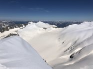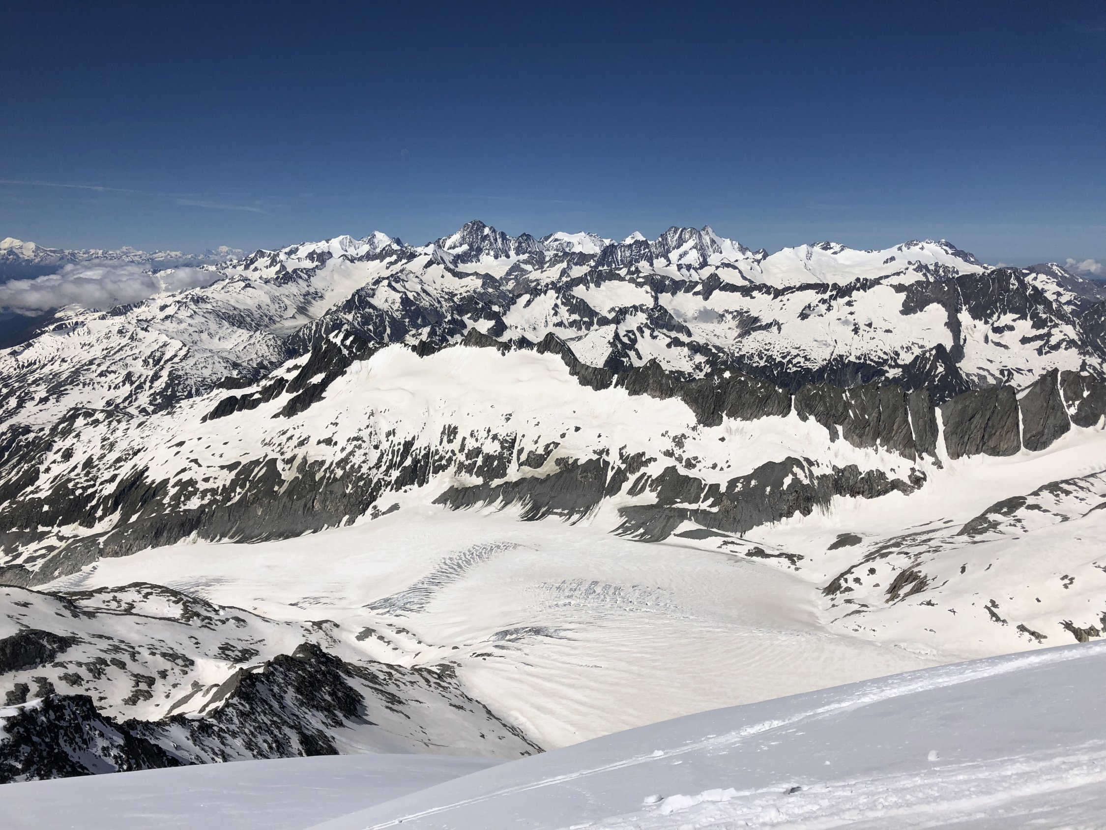 Heute unglaublich viele Leute unterwegs, die sich aber doch einigermassen verteilt haben. Der schnee schon weich am morgen, aber gut zum aufsteigen. Harscheisen am gipfelhang nützlich. Erstaunlicherweise gingen die meisten ohne skis zum Gipfel. Abfahrt oben durchgepflügter Sommerschnee, der für die