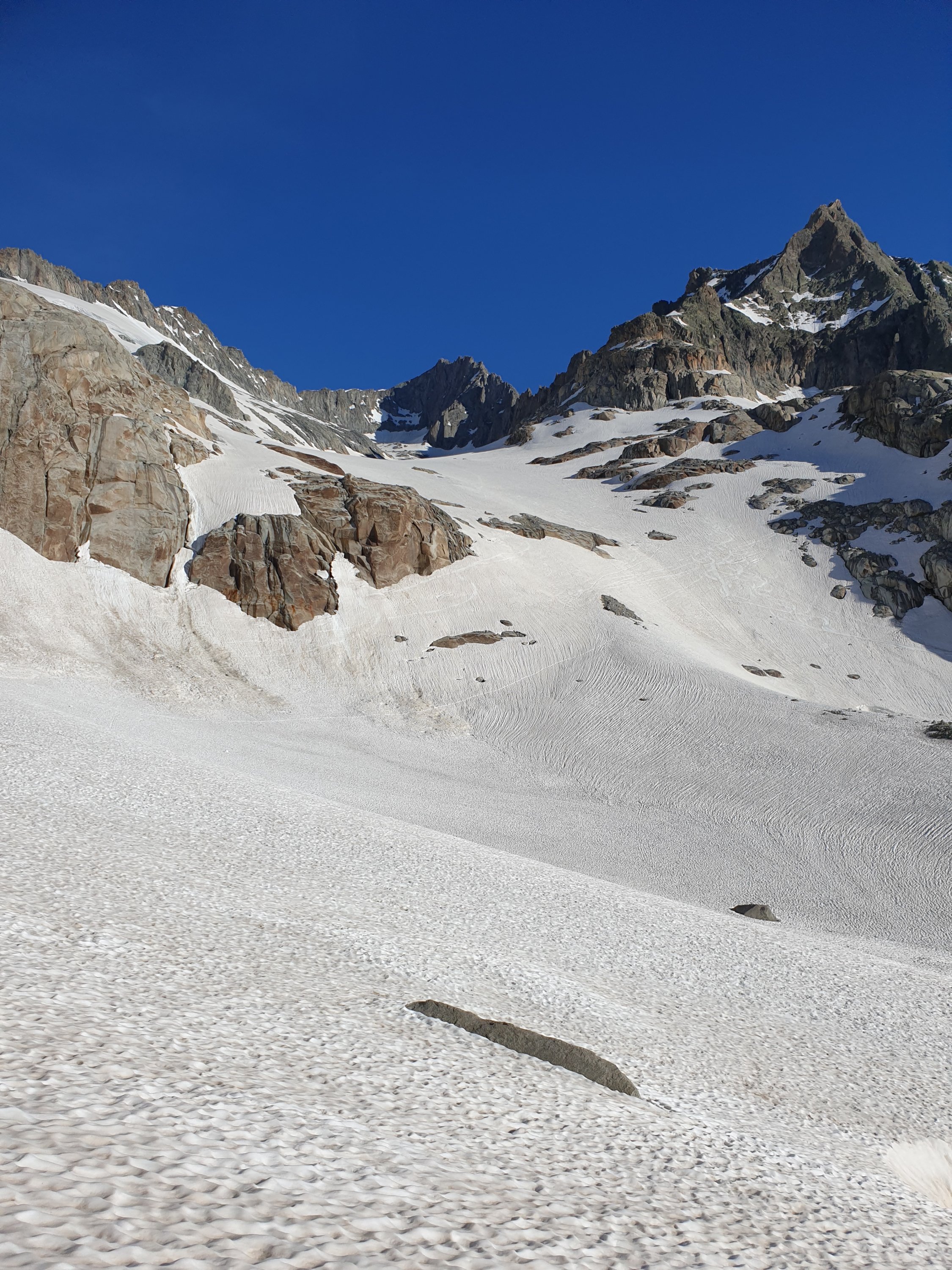Unter 2500m wird der Schnee langsam wegschmelzen, darüber wird die Route mit Schneeschuhen oder Ski sichet noch 2 Wochen begehbar.