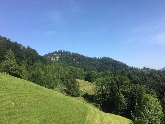 Der Zustieg ist über weite Teile mit Schlagholz versperrt, was etwas zeitaufwendig ist. Die ersten Meter aus dem Bachbett raus waren noch übel feucht und lehmig. Feste Bergschuhe und einen Pickel würden hier gute Dienste leisten und entscheidend zur Sicherheit beitragen. Zum Glück findet man in der Hörnli Westwand immer wieder solide Wurzeln als Griffe und so geht es dann sehr abwechslungsreich über den Sporn zum Fahrradanhänger und der Traverse entlang unter die Schlüsselstelle.